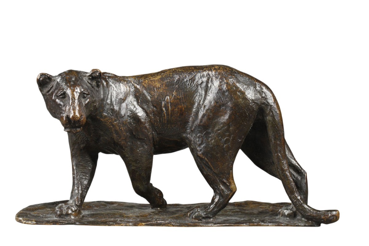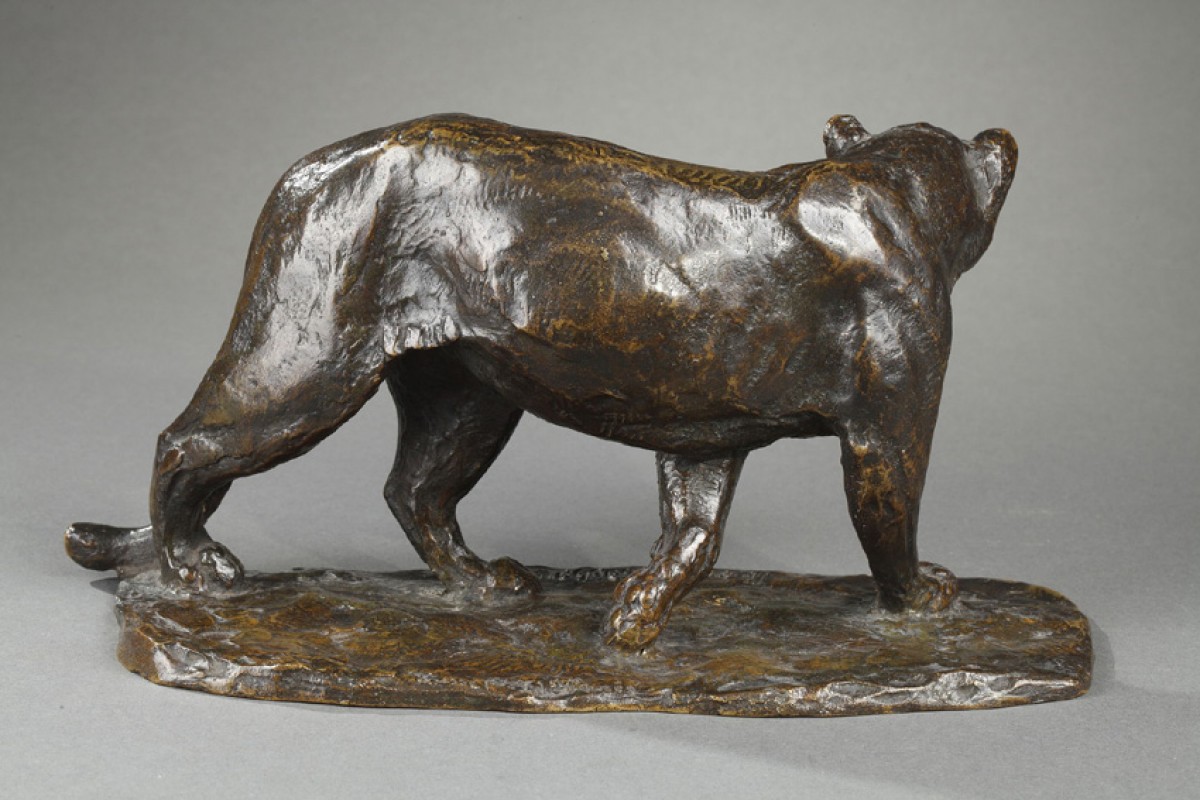 Retrouver le mobilier ou les objets d''art similaires à « Lionne se tournant - Roger GODCHAUX (1878-1958) » présenté par Galerie Tourbillon, antiquaire à Paris dans la catégorie Sculpture en Bronze Art Déco, Sculpture.