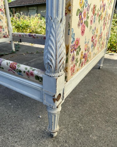 Retrouver le mobilier ou les objets d''art similaires à « Lit Louis XVI en bois sculpté et Laqué » présenté par Frédéric Brossy, antiquaire à Rolle dans la catégorie Lit Louis XVI, Mobilier.