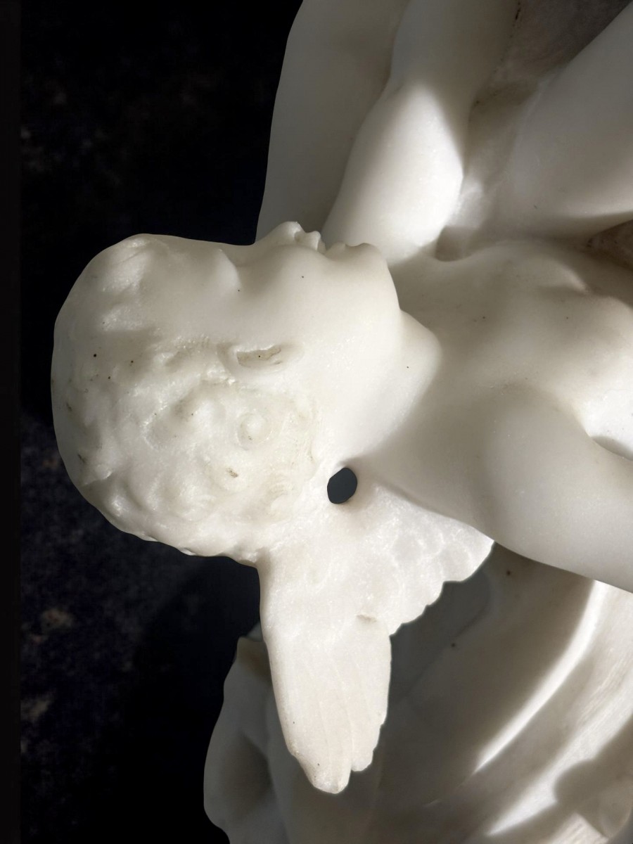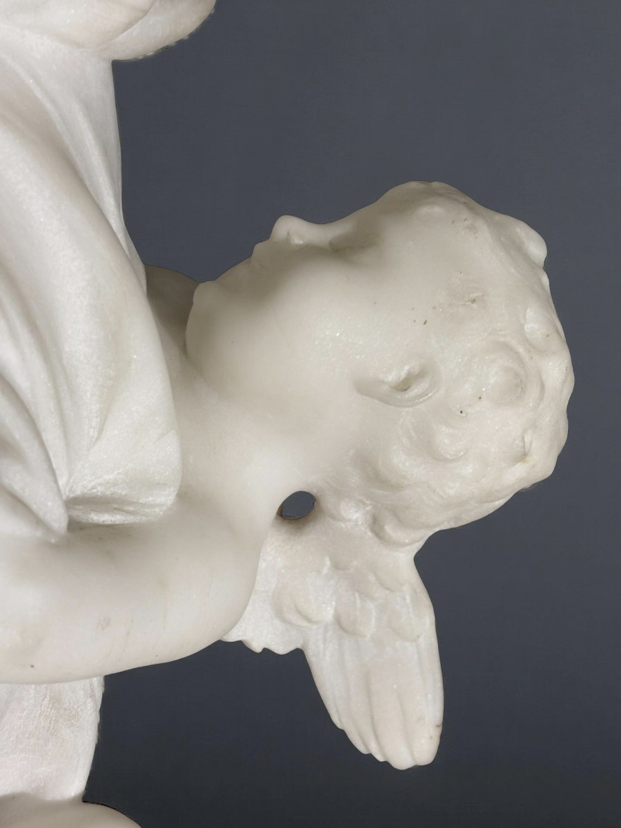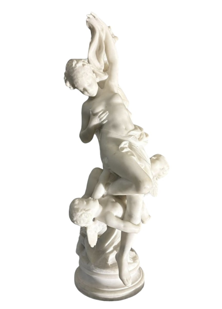 Retrouver le mobilier ou les objets d''art similaires à « Luca Madrassi (1848-1919) L'Innocence tourmentée par l'Amour » présenté par Antichità San Felice, antiquaire à Pistoia dans la catégorie Sculpture en Marbre Art nouveau, Sculpture.
