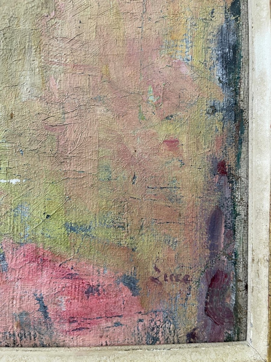 Notre Tableau "Portrait d'Ambroisine Luce" peint en 1903, représente sa femme; celle-ci occupe une place importante dans son œuvre puisqu'Ambroisine a été une figure récurrente dans ses peintures. Luce l'a souvent peinte dans des moments de la vie quotidienne, comme en train de lire, de coudre, ou simplement posant pour lui. Dans notre tableau nous retrouvons une palette de couleurs variée, incluant des tons de rose, violet, vert et bleu et le fond abstrait est texturé avec des nuances de jaune et de rose.