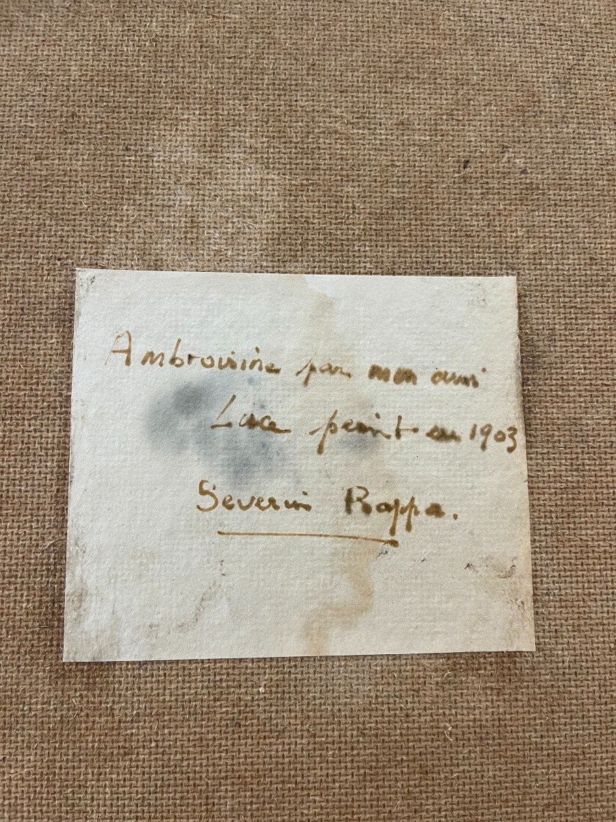 L'artiste Severin Rappa, ami de Luce, a été le propriétaire de ce tableau, comme le révèle l'étiquette au dos : "Ambroisine peint par mon ami Luce en 1903. Severin Rappa". Rappa a vraisemblablement acquis ce tableau après la mort de Luce en 1941, lui-même ayant perdu Ambroisine en 1940. Nous connaissons trois dessins d'Ambroisine datés de 1903, réalisés par Rappa, tout comme notre tableau.