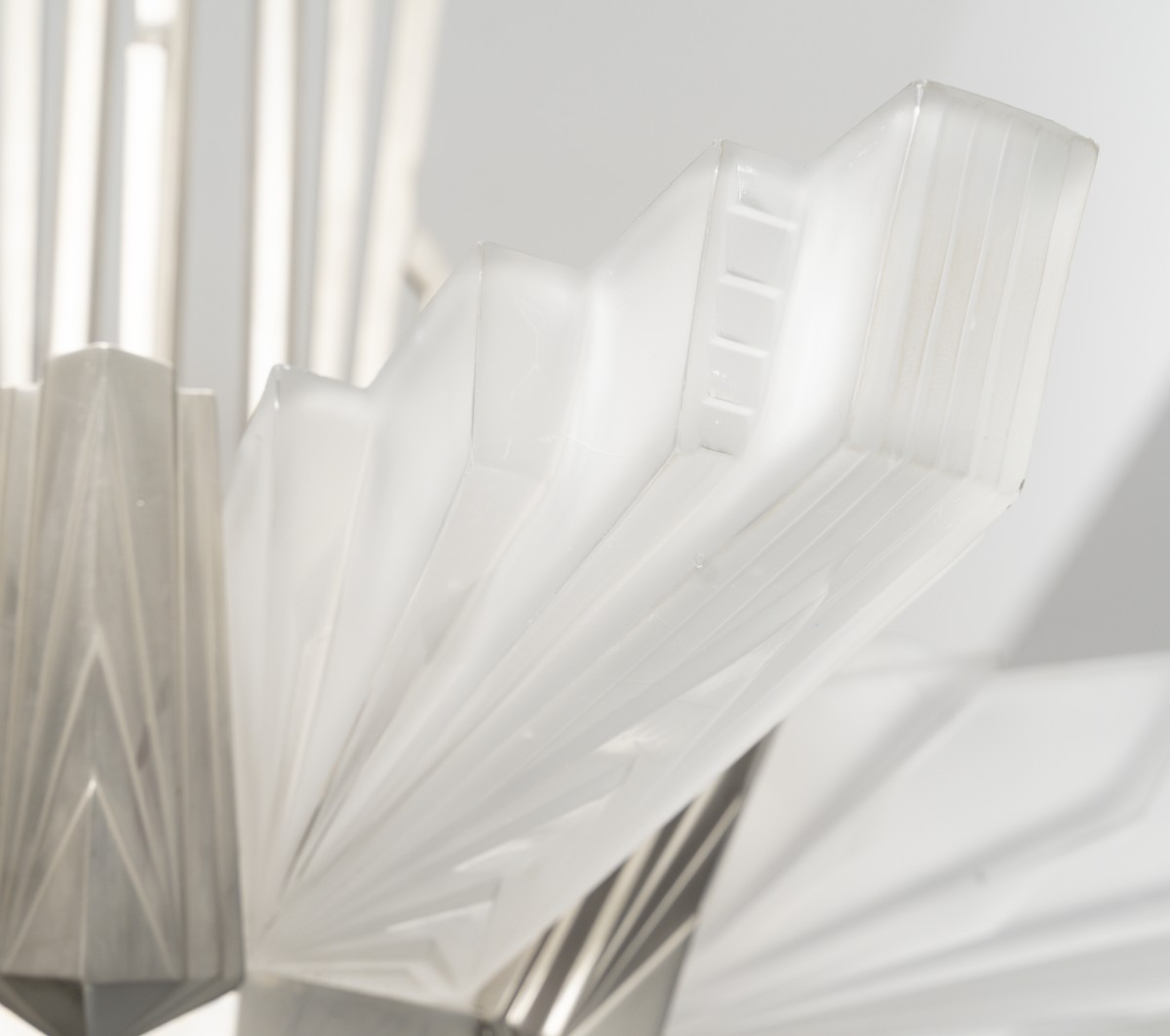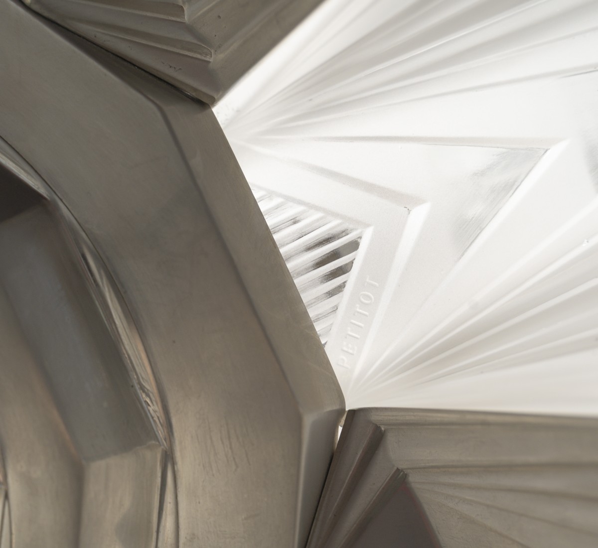 Les luminaires attribués à Henri Petitot se distinguent par l’utilisation de montures en bronze, laiton ou métal nickelé, associées à des verreries de haute qualité, souvent en verre pressé, dépoli ou gravé. L’attention portée aux détails, à la finition des bronzes et à la diffusion de la lumière constitue l’une des signatures de la maison.