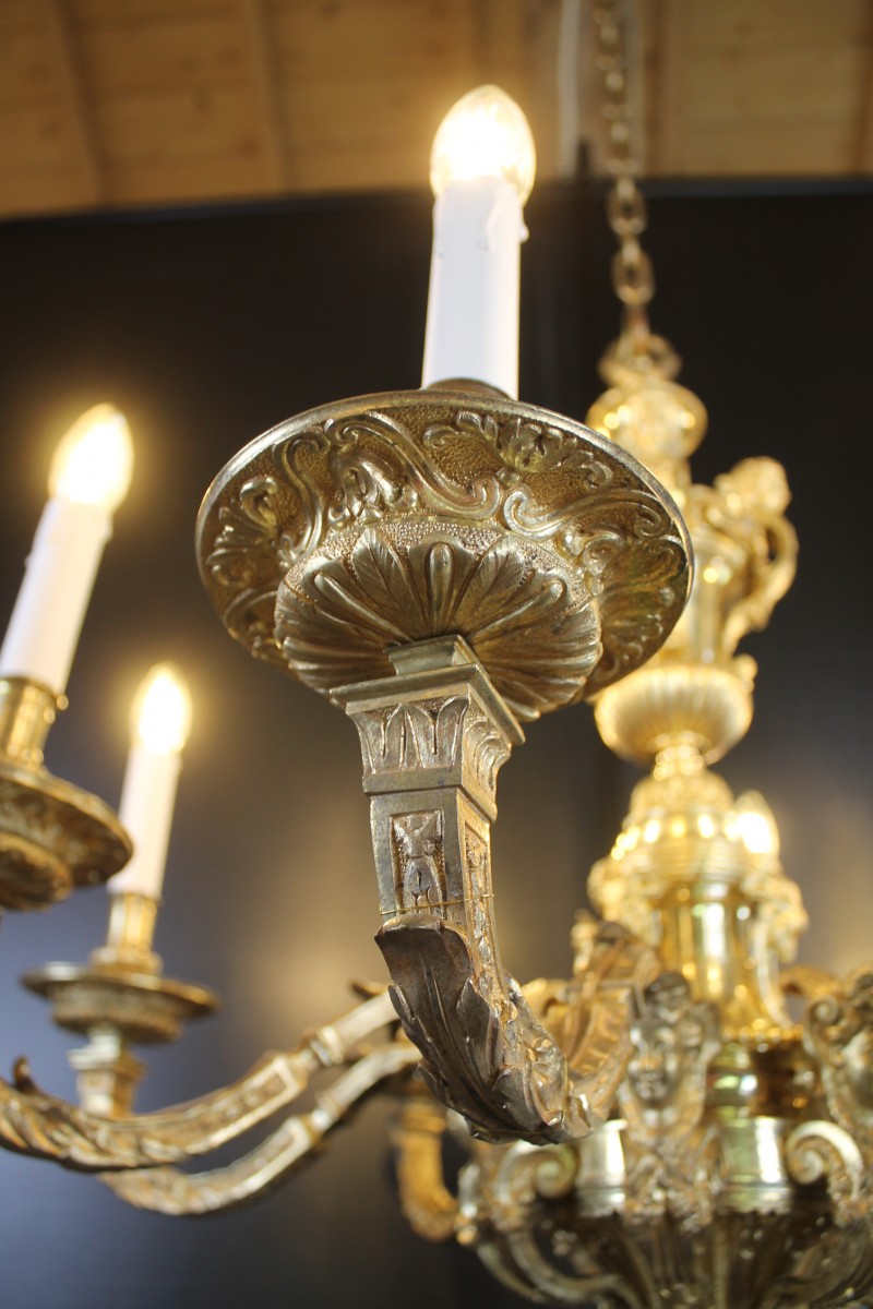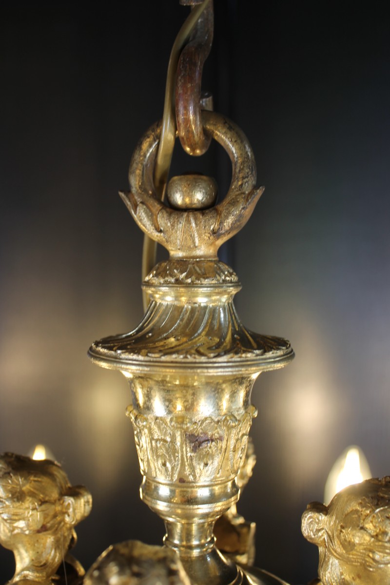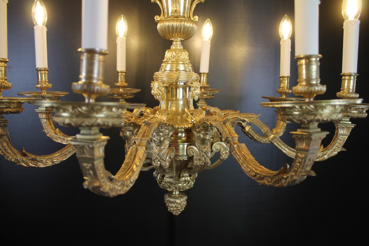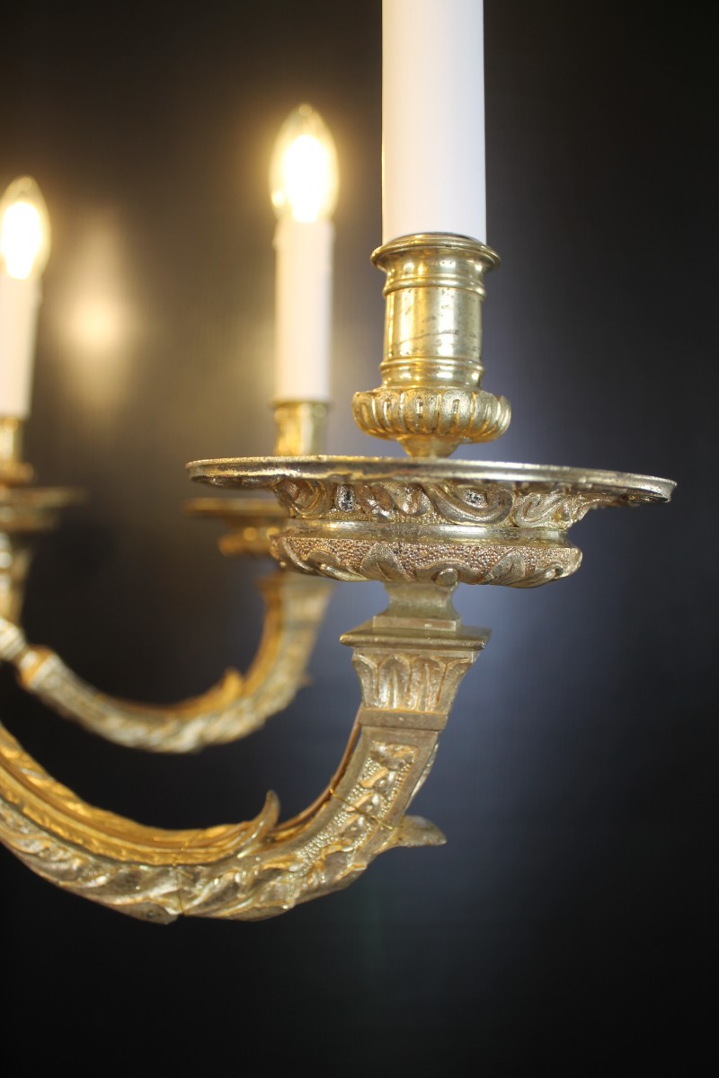 Beau lustre Mazarin à huit bras de lumières en bronze finement ciselé et doré.