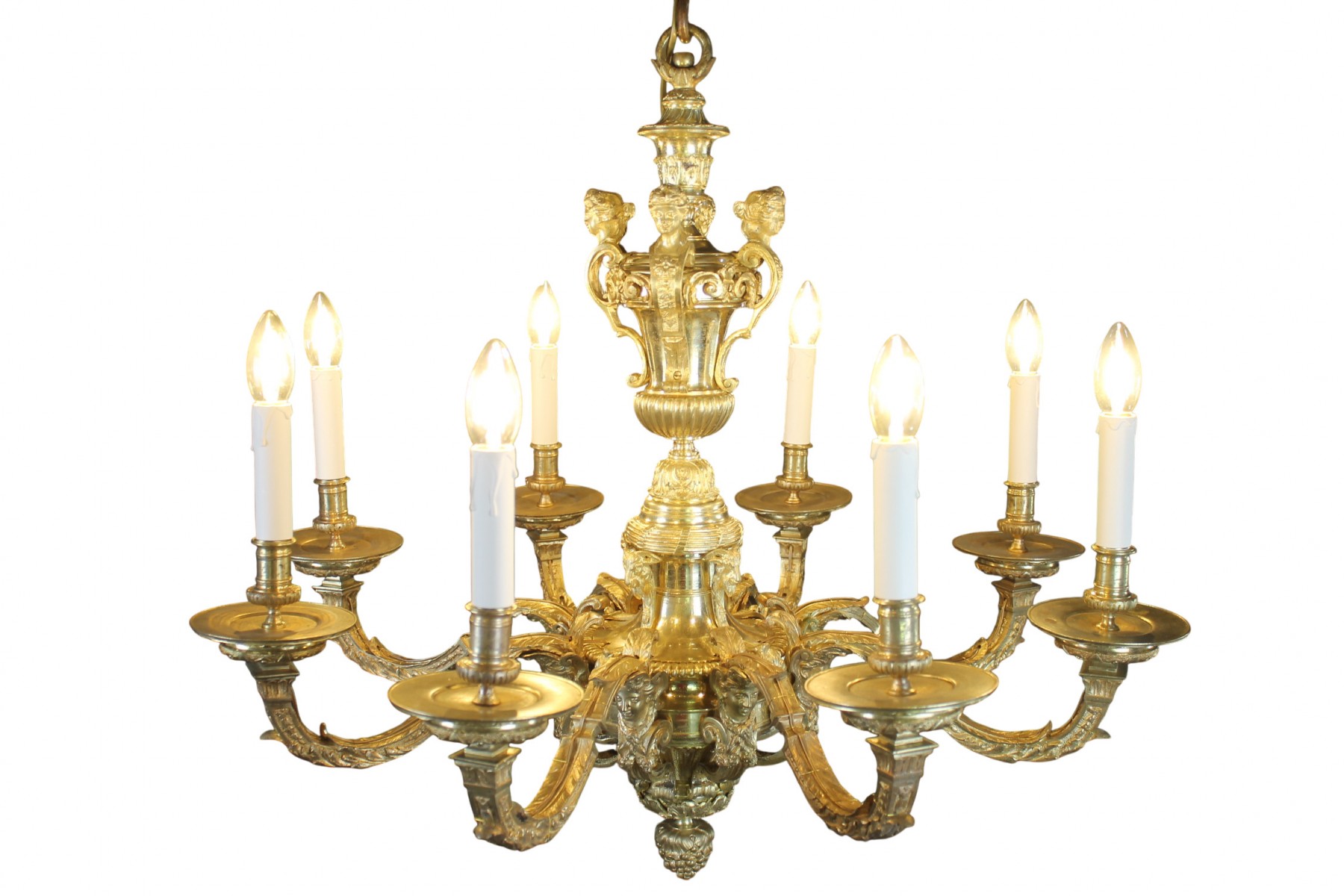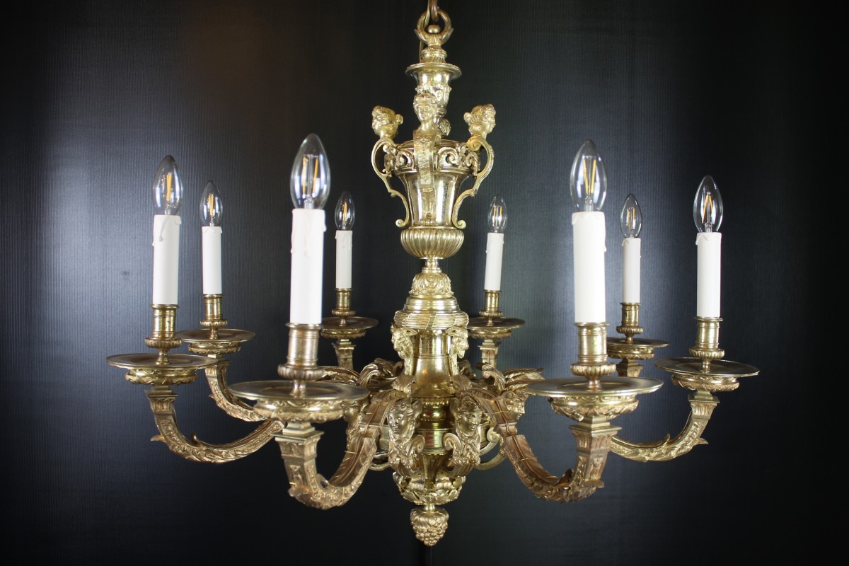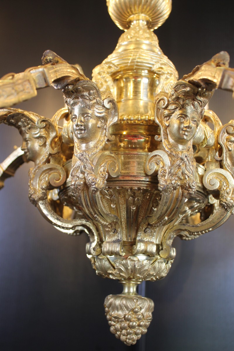 Beau lustre Mazarin à huit bras de lumières en bronze finement ciselé et doré.