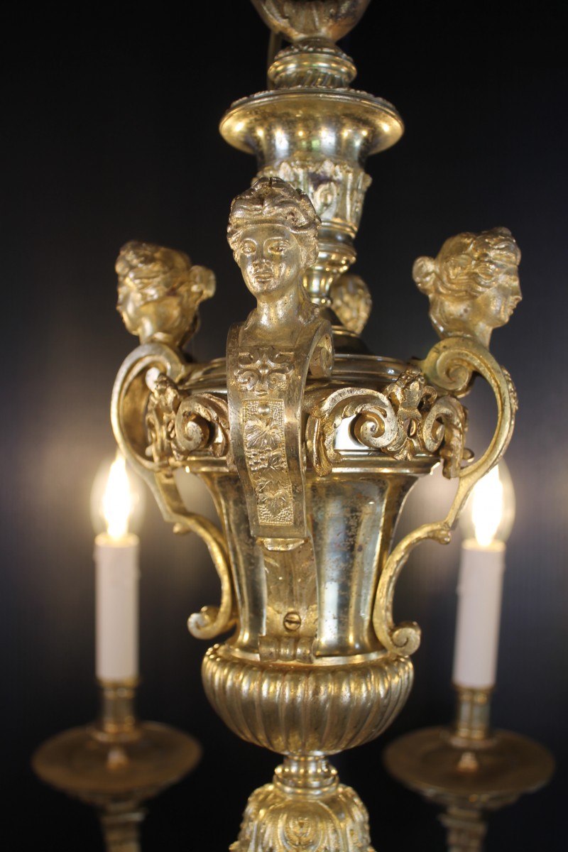 Les bras de lumières en appui sur des consoles ornées de têtes féminines.