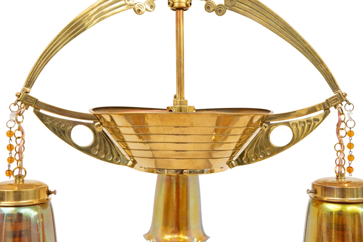 Retrouver le mobilier ou les objets d''art similaires à « Lustre en verre de Loetz Johann Loetz Witwe Goldiris vers 1900 » présenté par Florian Kolhammer, antiquaire à Vienna dans la catégorie Lustre Art nouveau, Luminaires.