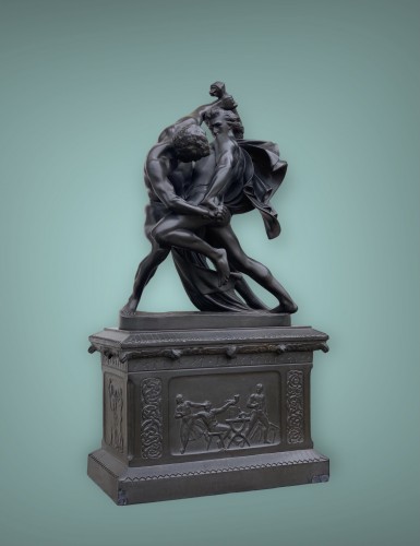Retrouver le mobilier ou les objets d''art similaires à « Lutteurs au couteau en grès émaillé d’après la Statue de J. P. Molin , Stockholm 1867 » présenté par Galerie Golovanoff, antiquaire à Paris dans la catégorie Sculpture en Terre cuite Art nouveau, Sculpture.