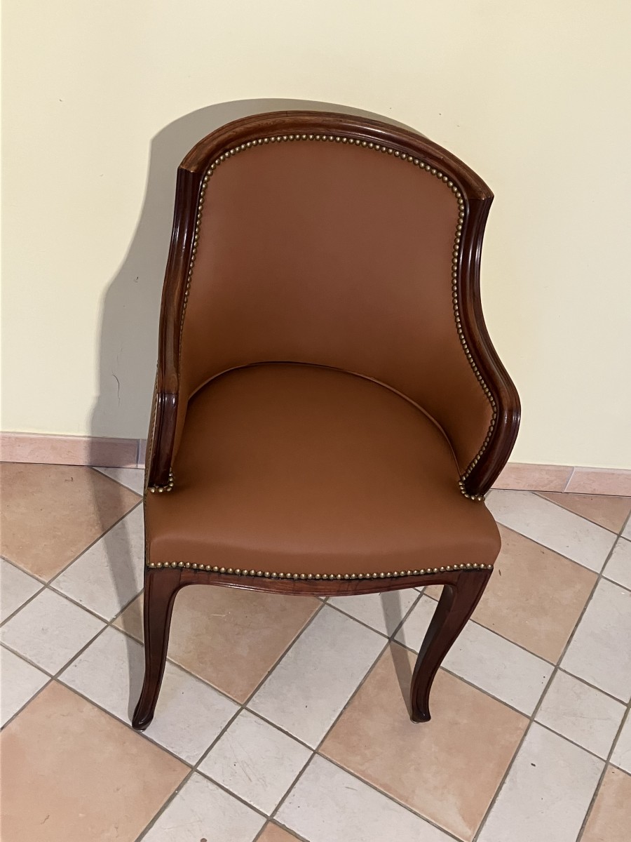 Retrouver le mobilier ou les objets d''art similaires à « Majorelle Nancy - Fauteuil de bureau en acajou » présenté par Galerie Vaudemont, antiquaire à Ménil La Tour dans la catégorie Fauteuil & Bergère Art nouveau, Sièges.