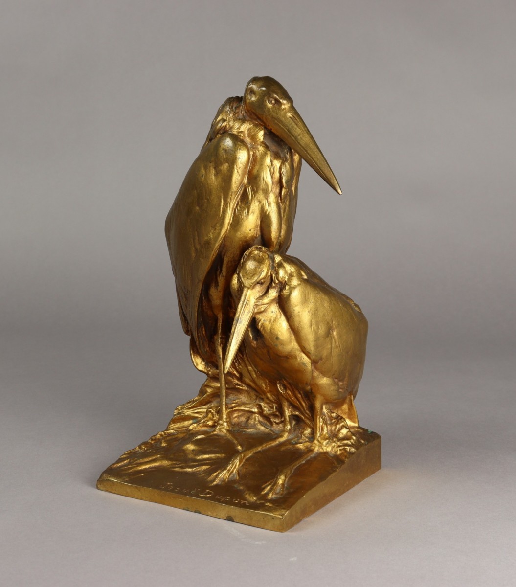 Marabouts, sculpture en bronze doré par Josuë Dupon, fonte par Petermann à Bruxelles