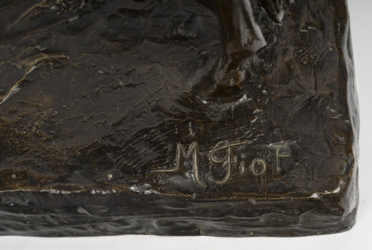 Bronze à patine brun foncé, signé M. Fiot sur la terasse.