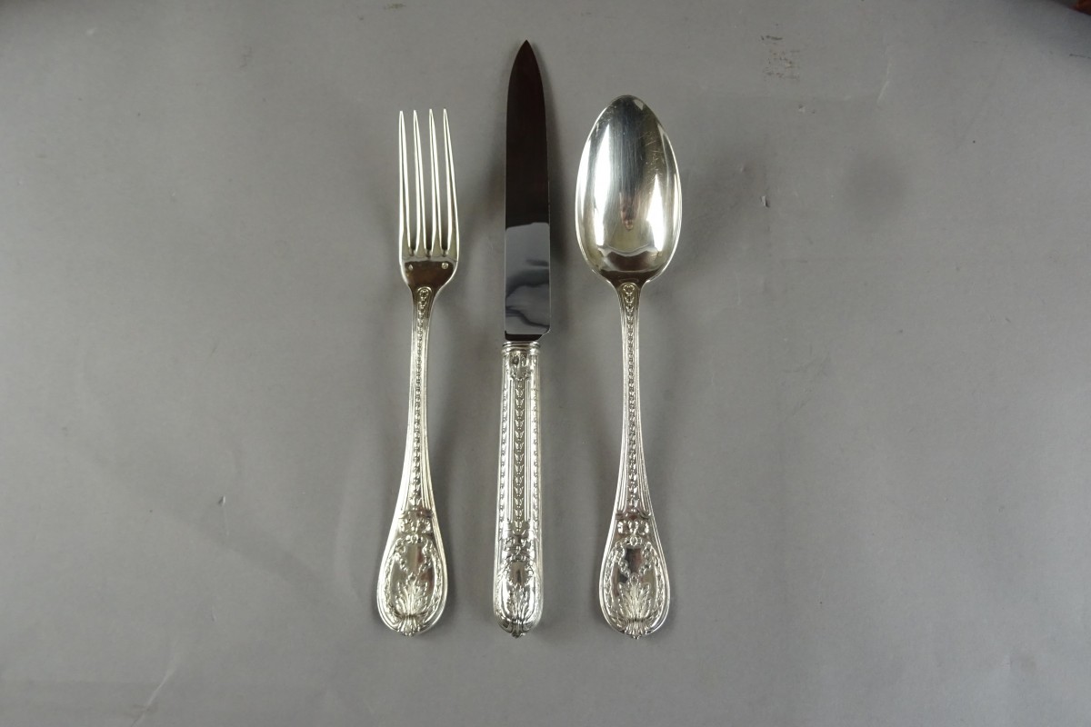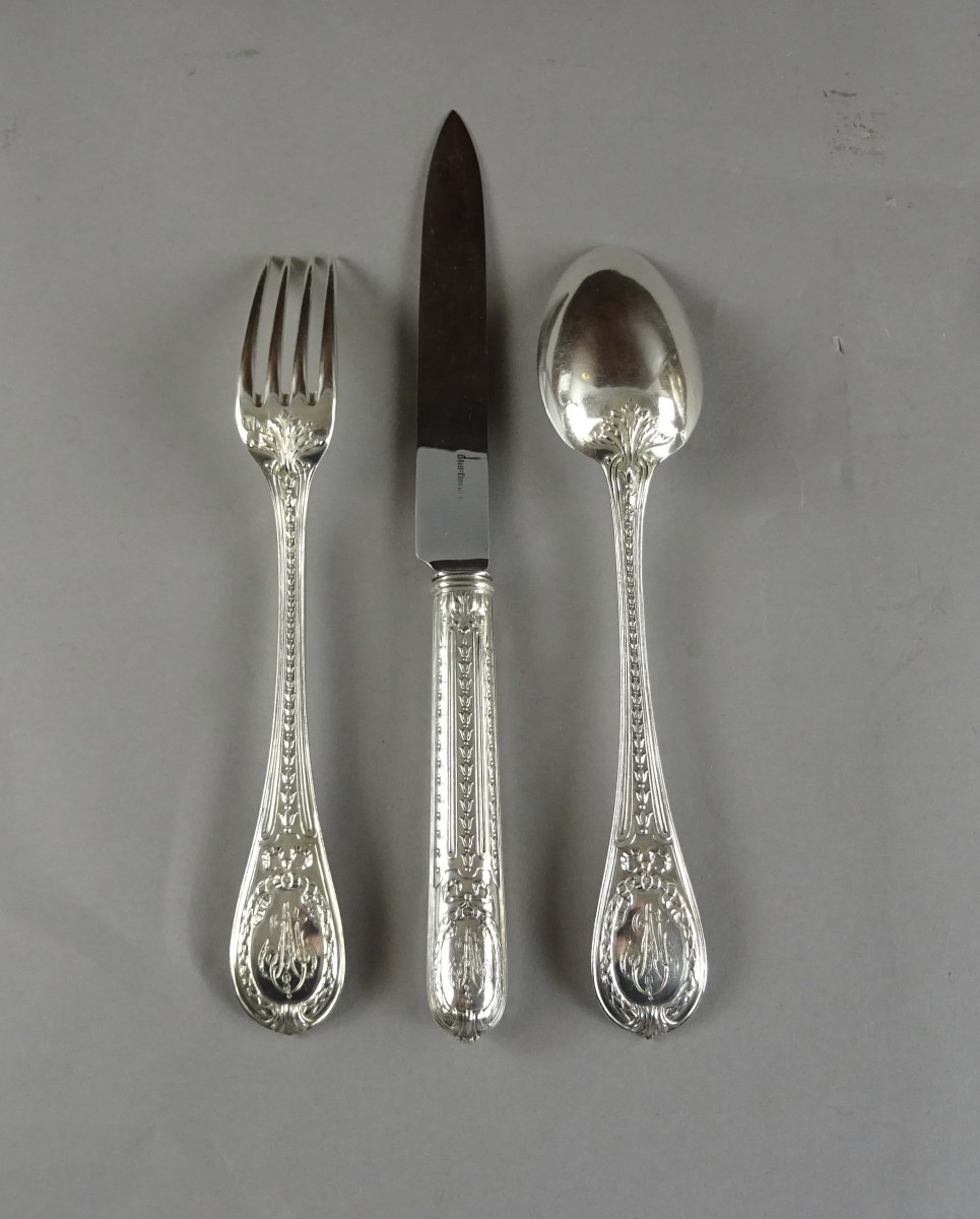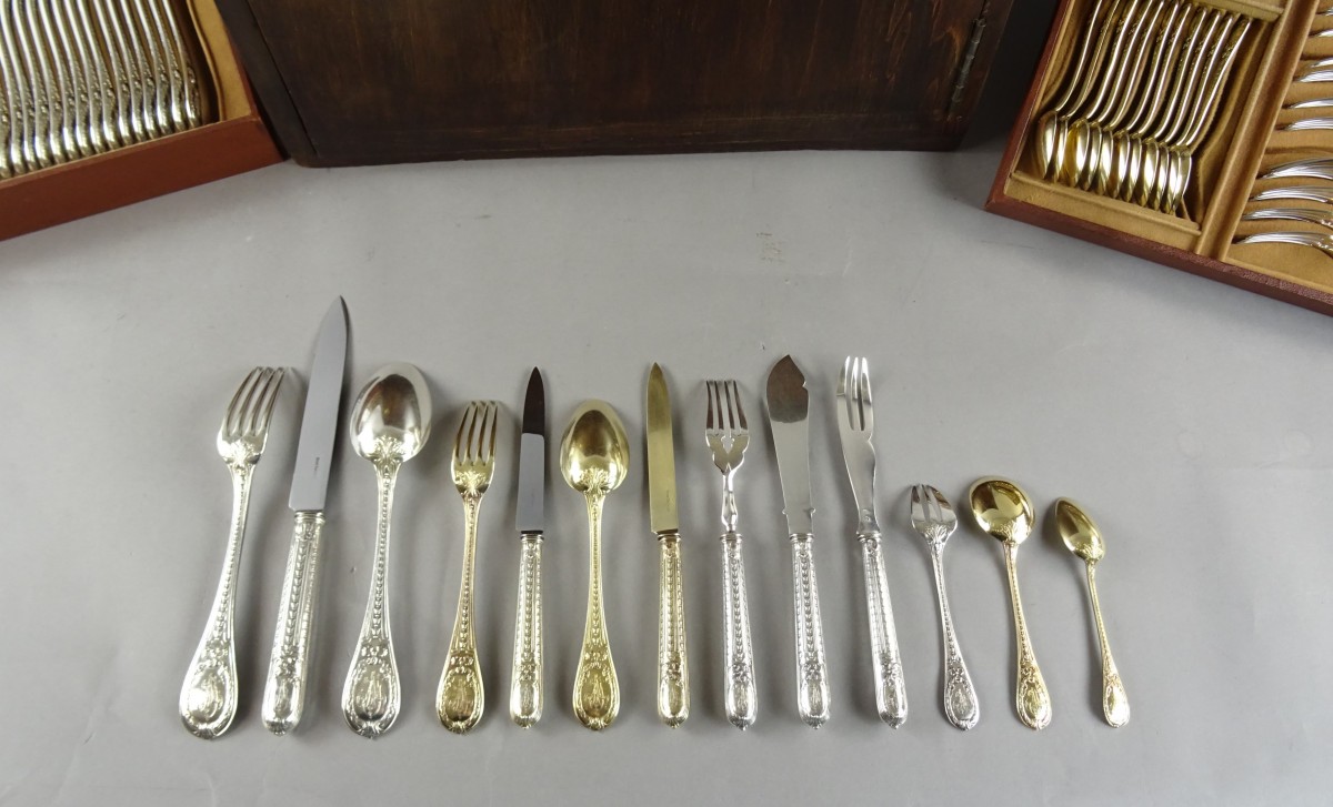 Ménagère très complète en argent massif et vermeil, modèle Marie-Antoinette de style Louis XVI signé de l’orfèvre Boin-Taburet et Puiforcat.