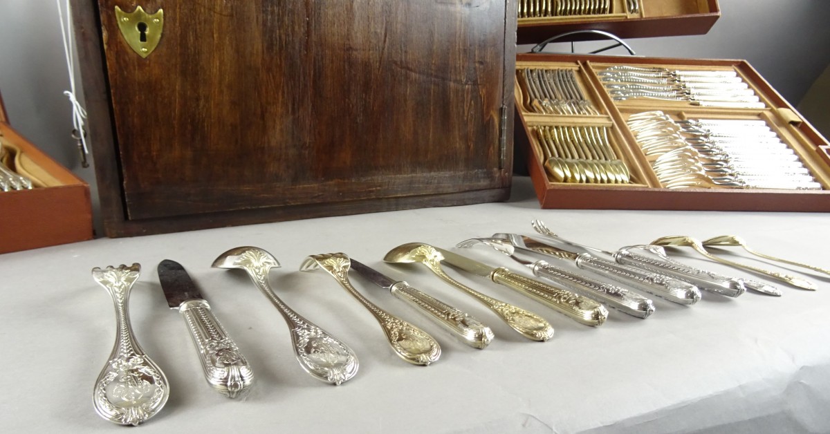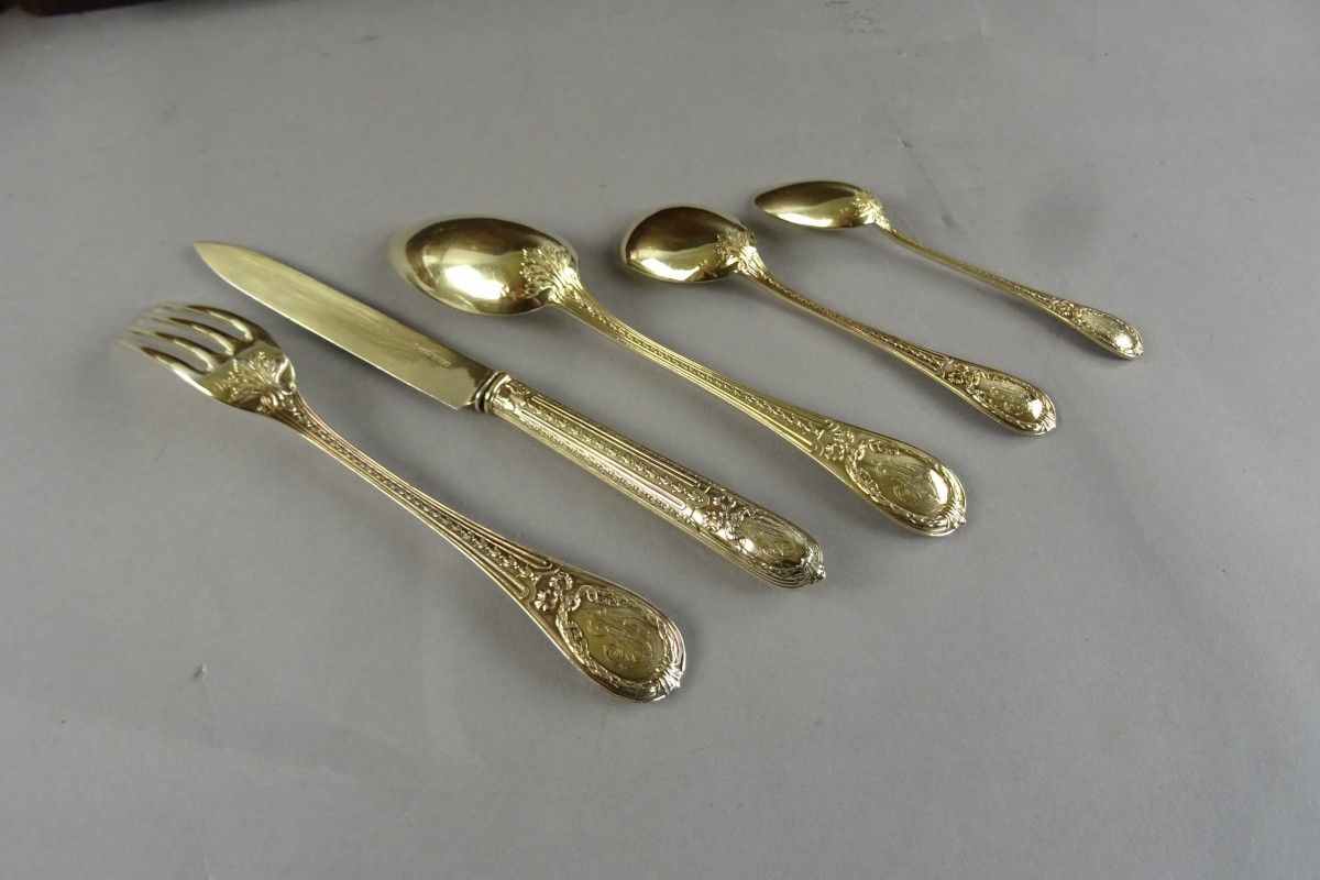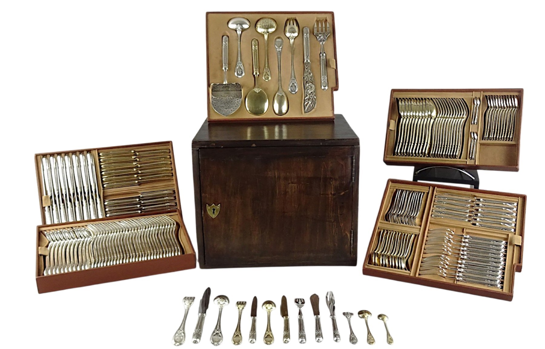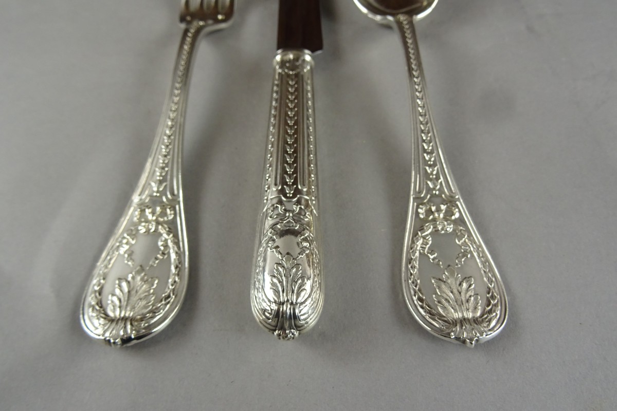 Ménagère très complète en argent massif et vermeil, modèle Marie-Antoinette de style Louis XVI signé de l’orfèvre Boin-Taburet et Puiforcat.