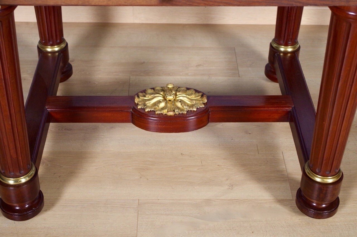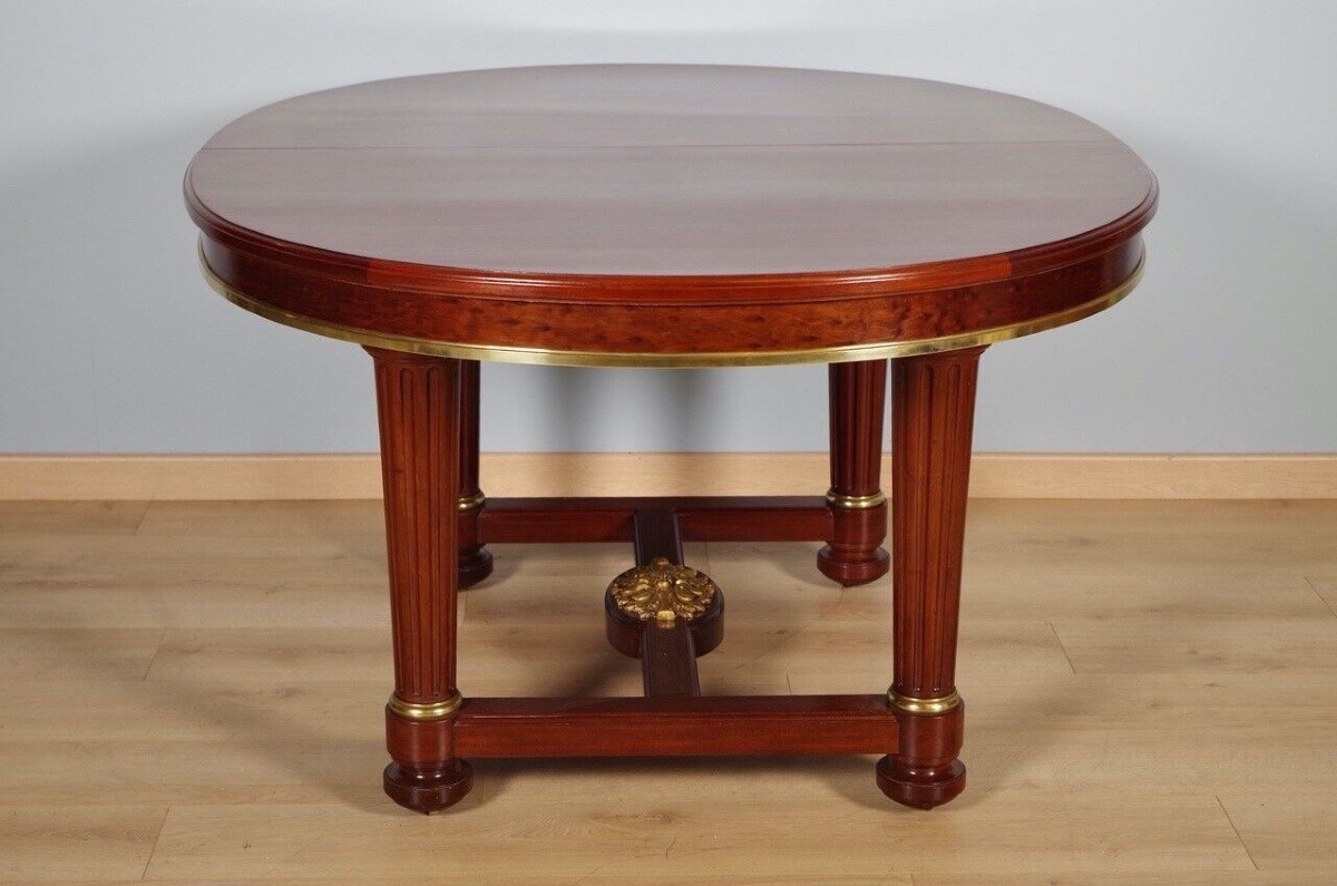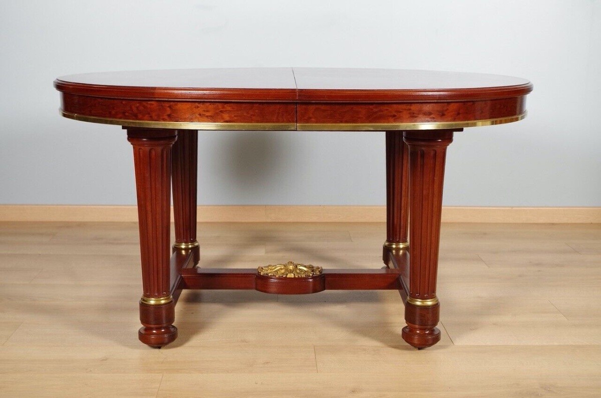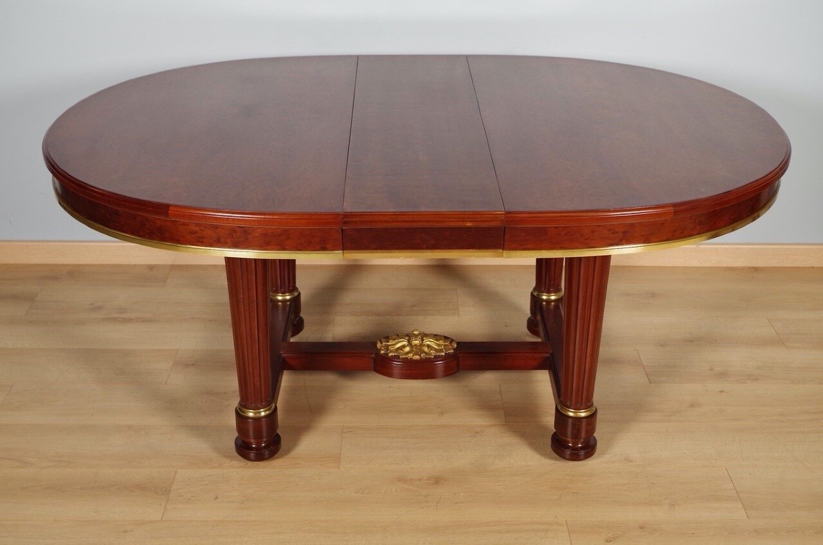 Retrouver le mobilier ou les objets d''art similaires à « Mercier Frères à Paris, table en acajou et placage d'acajou moucheté vers 1870 » présenté par Antiquités Saint Jean, antiquaire à Villeurbanne dans la catégorie Table & Guéridon Napoléon III, Mobilier.