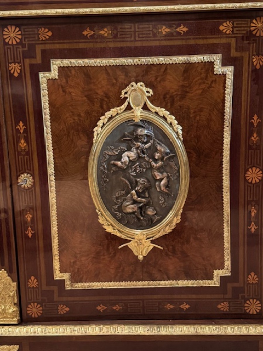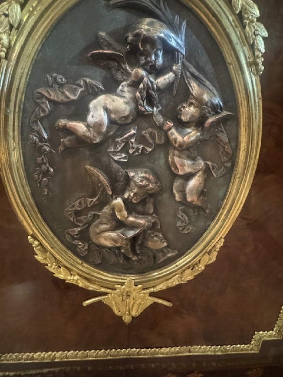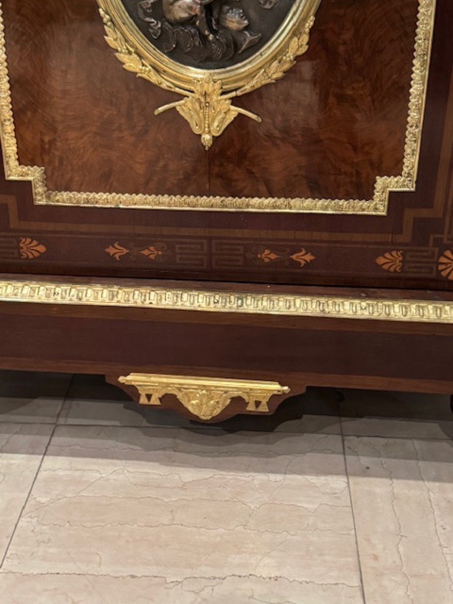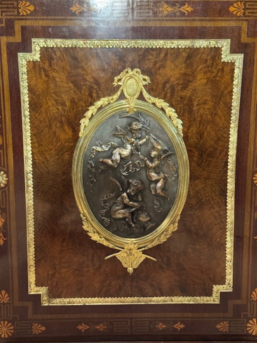 Meuble d'Appui à Médaillon Signé Madame Léon Bertaux (1825-1909) En Marqueterie D' époque Napoléon III .
