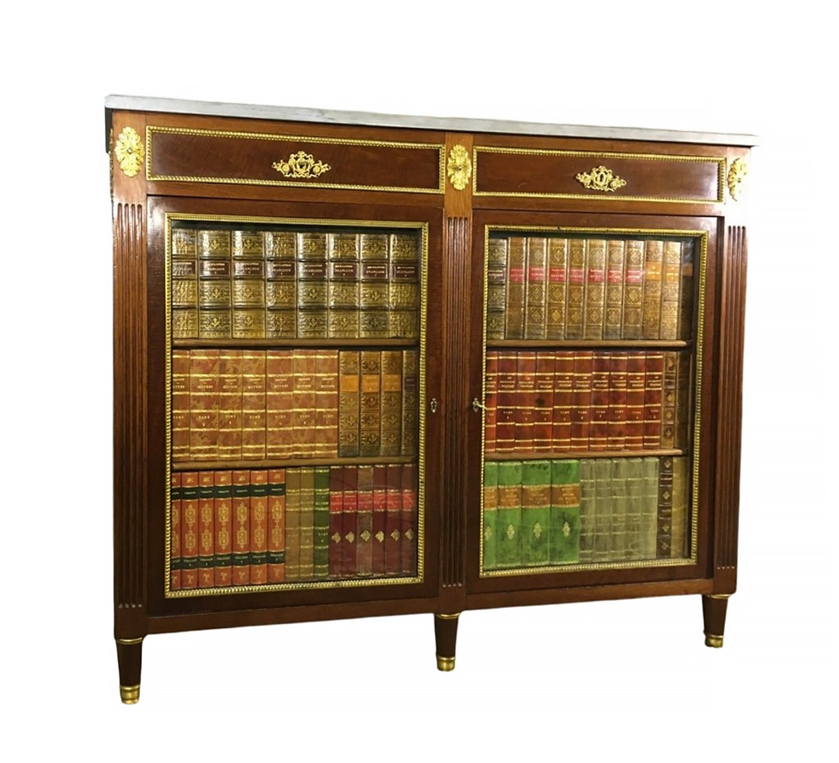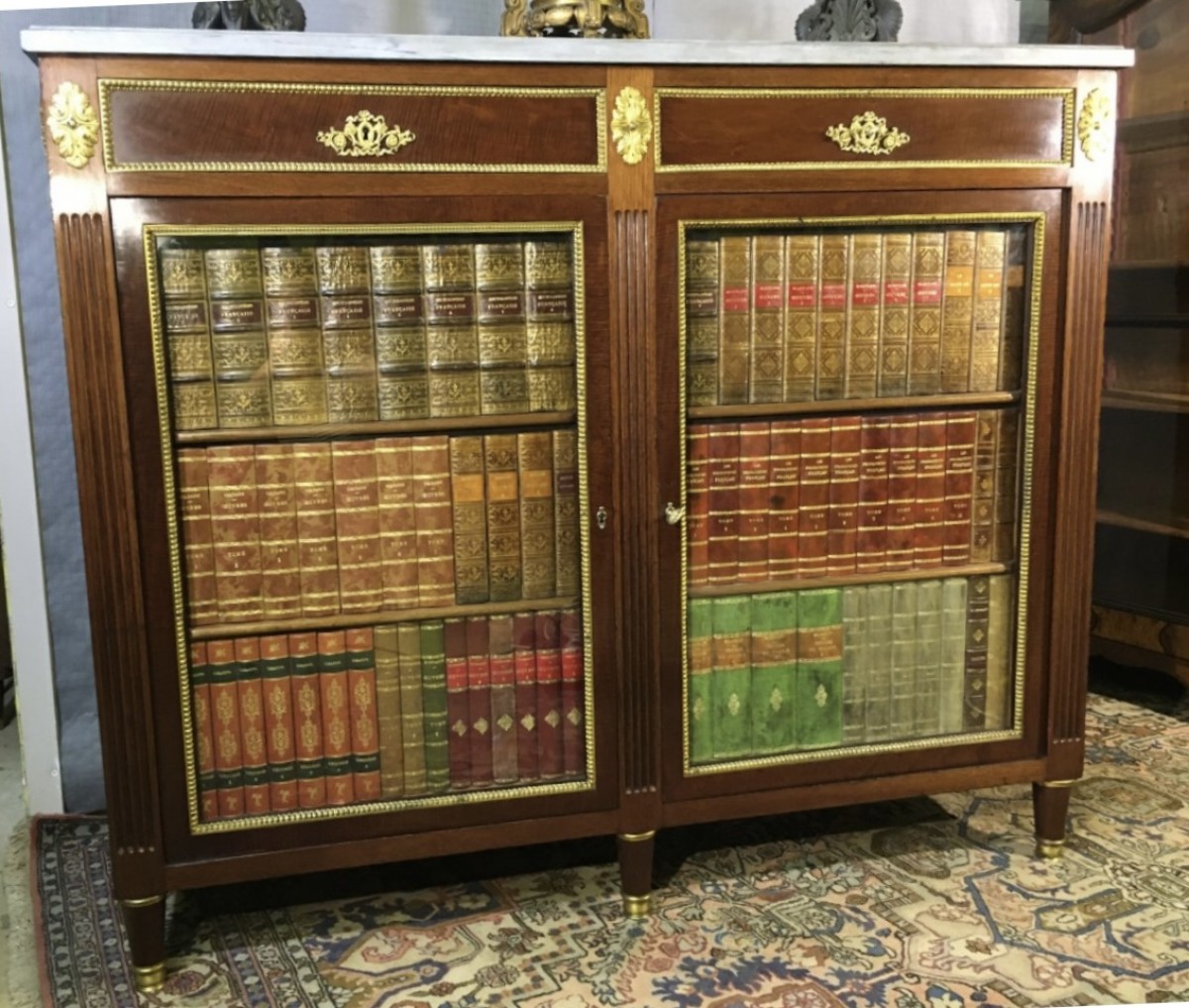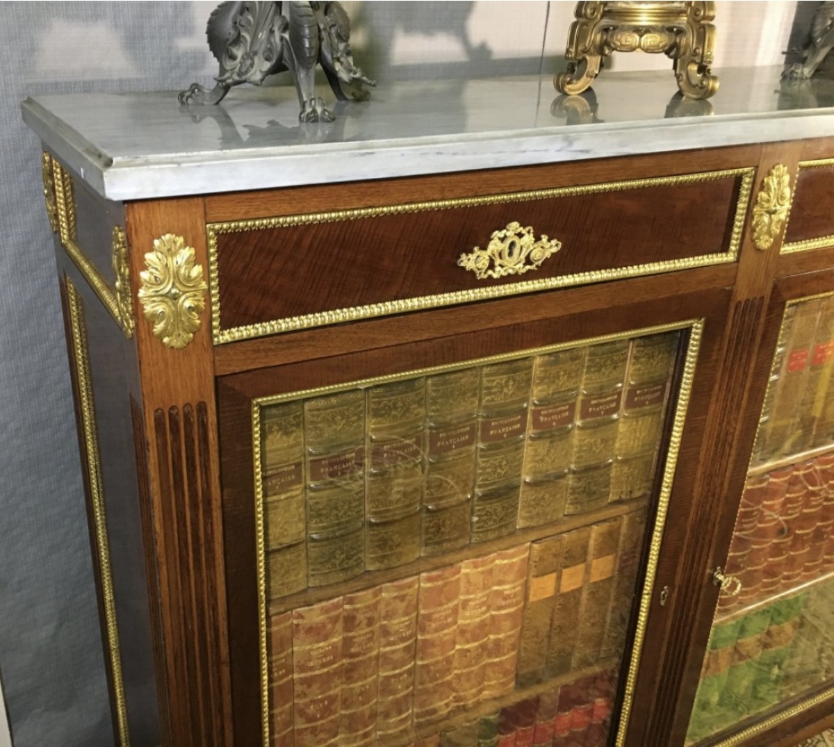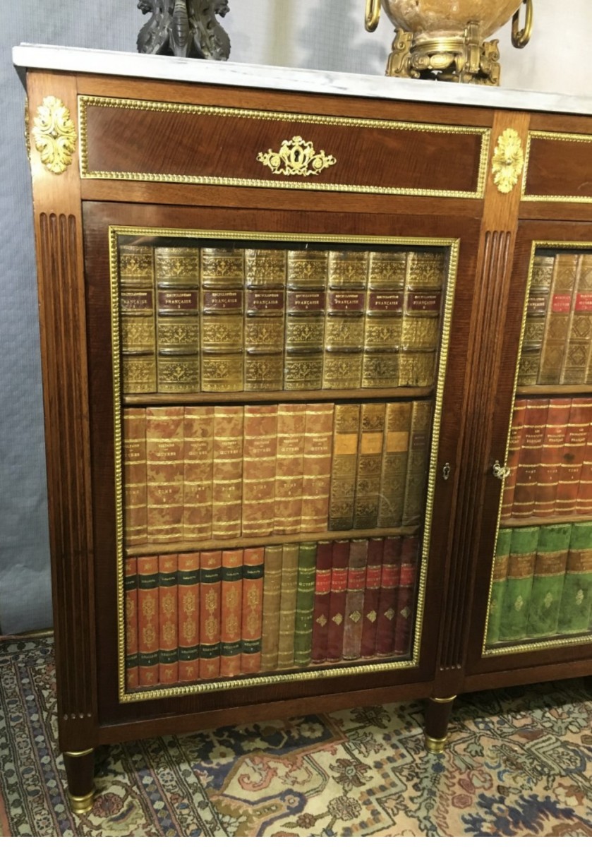 Son originalité vient de ses deux portes simulant une bibliothèque de faux livres, panneautées et entourées de filets en bronze doré