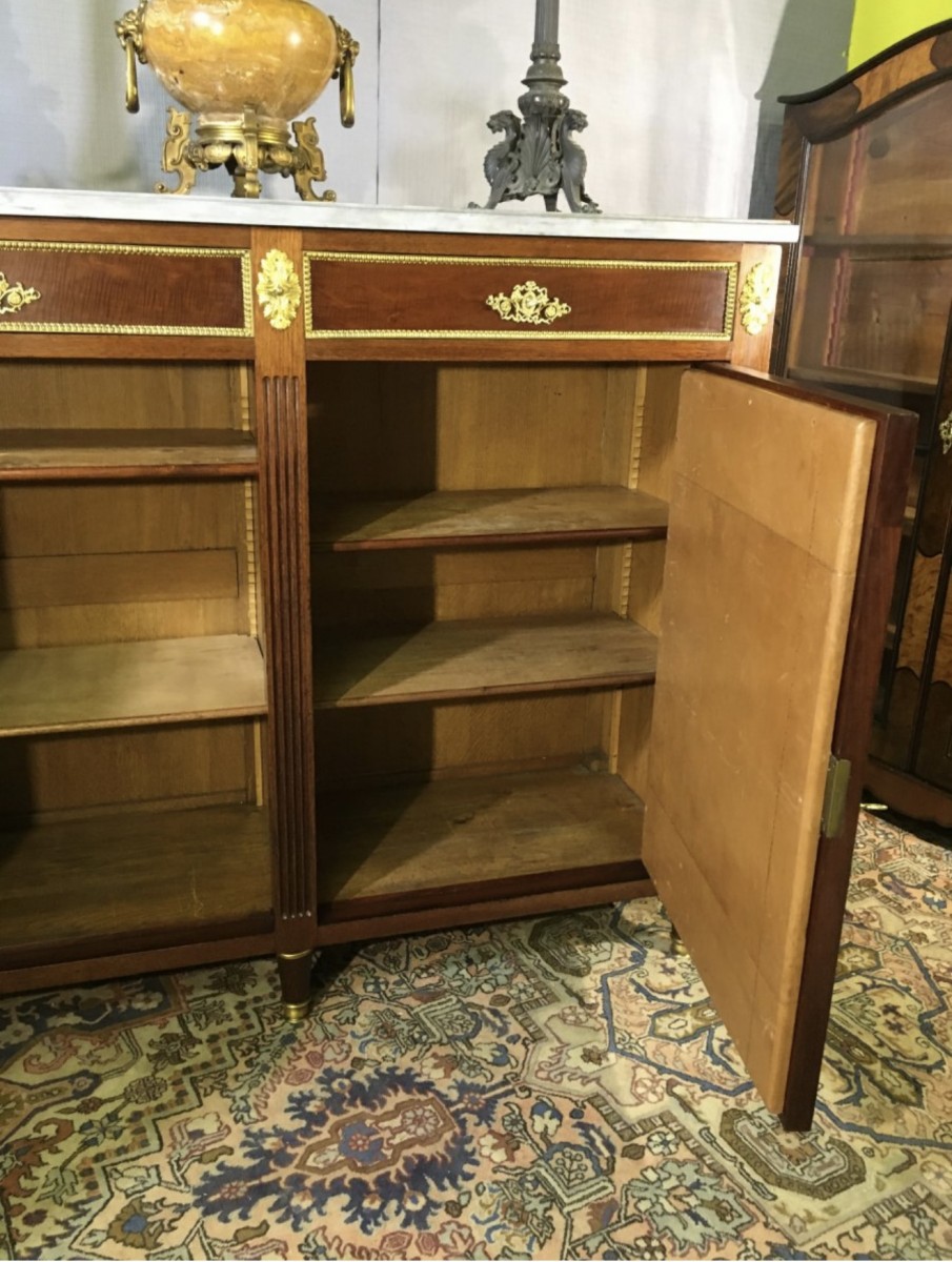 Grand meuble d'appui Louis XVI, en acajou et placage d'acajou, epoque directoire, fin du xviiie.