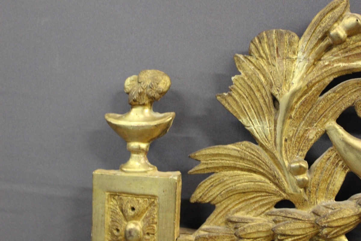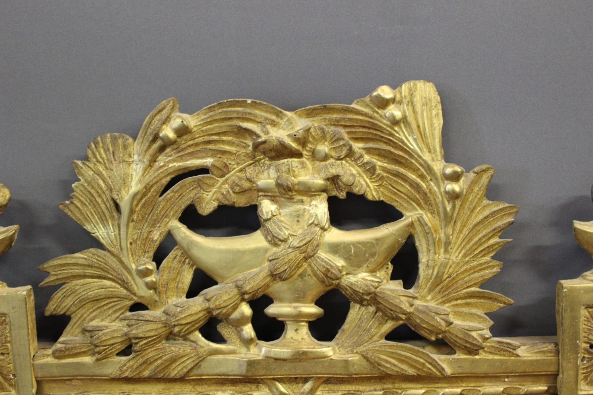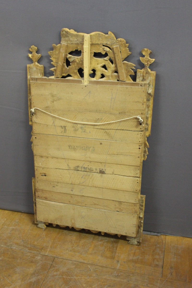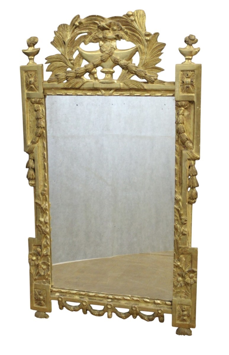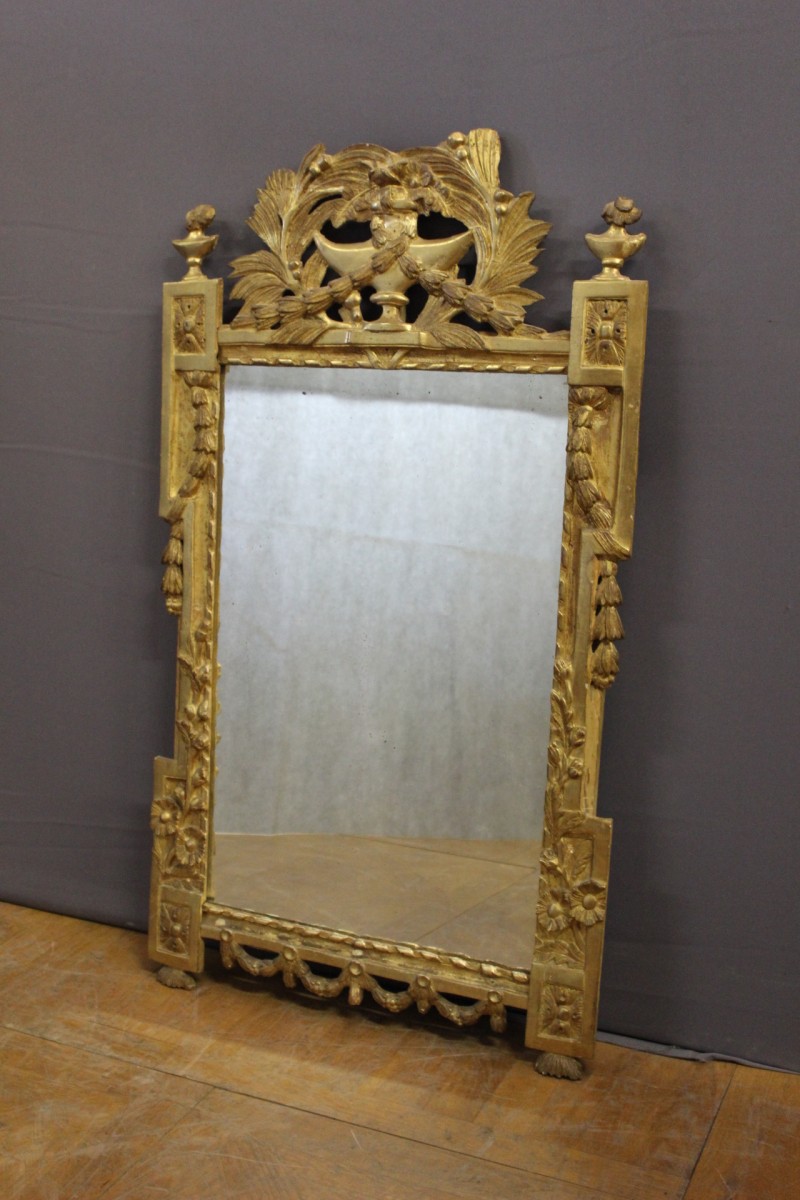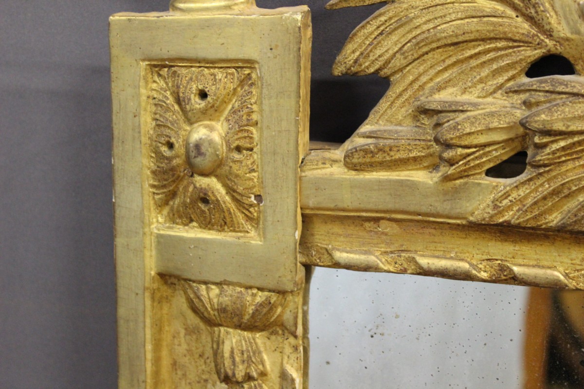 Miroir Louis XVI en bois doré à décor de guirlandes et de feuilles , vers 1780 , ensemble en très bon état