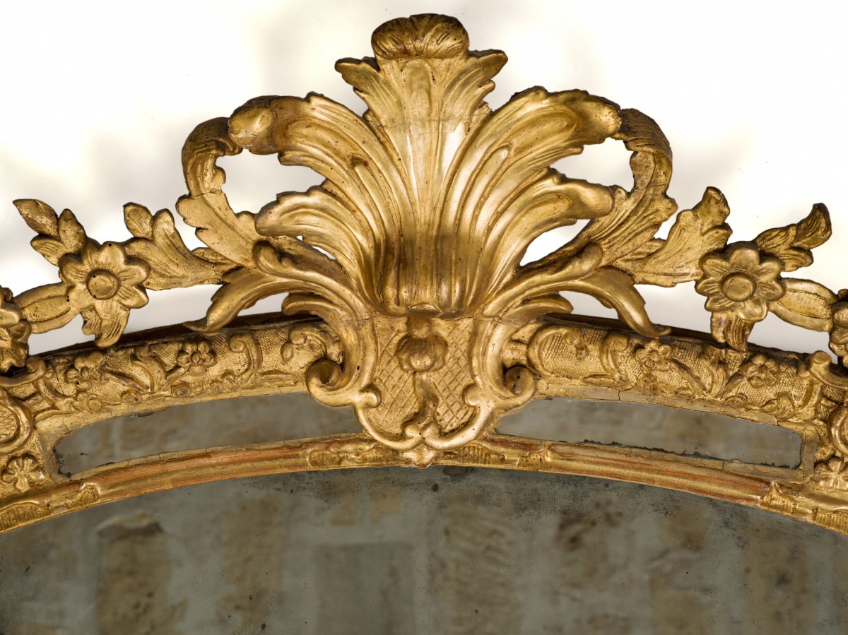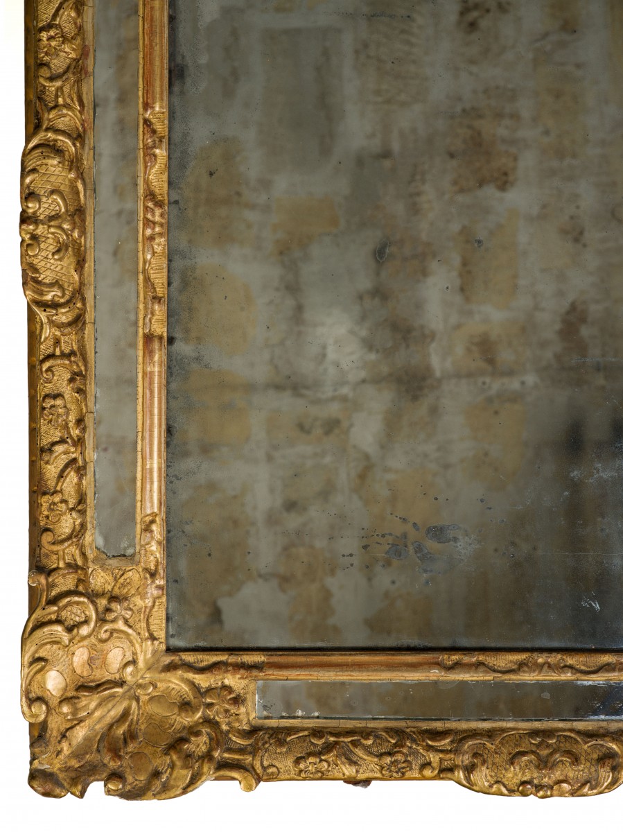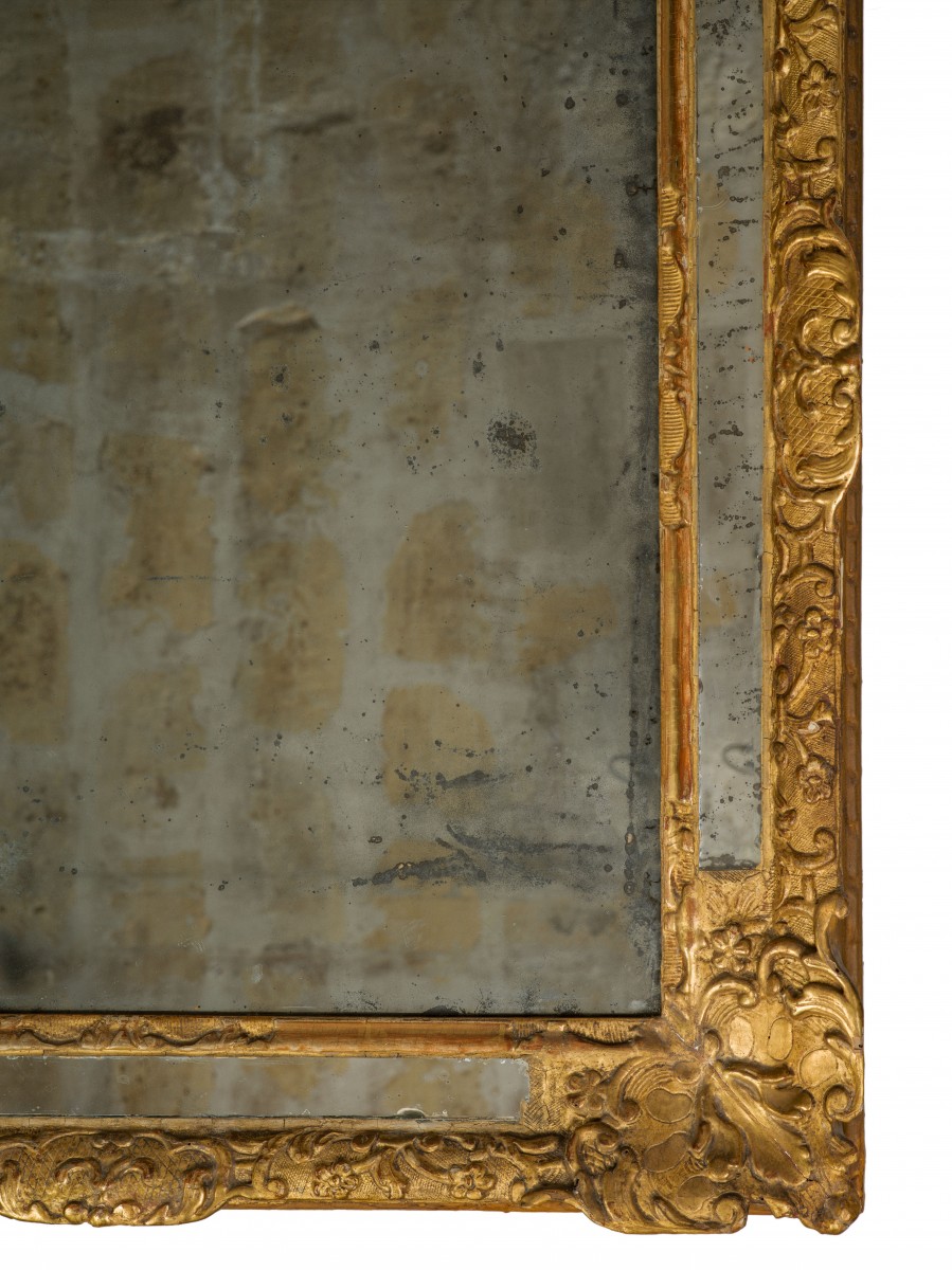 Miroir à parecloses en bois sculpté et doré d'époque Régence, de forme