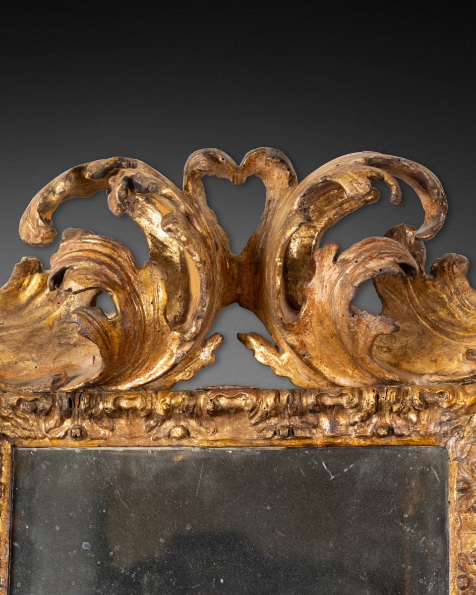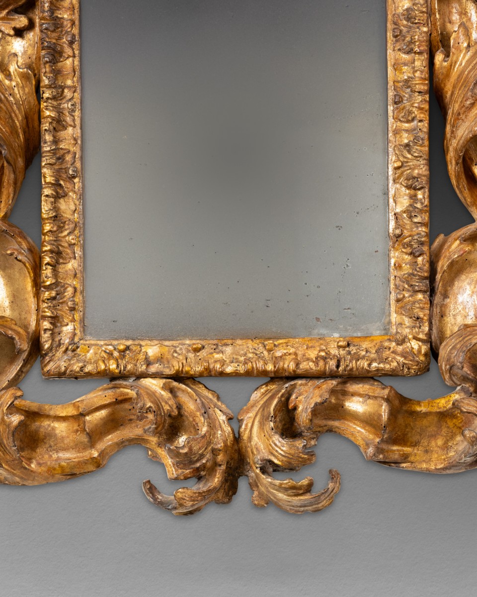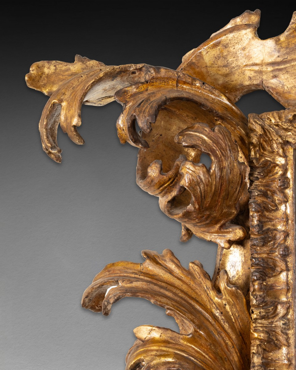 Toutefois notre miroir se distingue nettement de ces productions postérieures par la puissance de sa sculpture, la générosité des volumes et la maitrise absolue du fort relief qui singent une ouvre autographe , réalisée à l’apogée de sa carrière, dans les décennies 1680-1690.