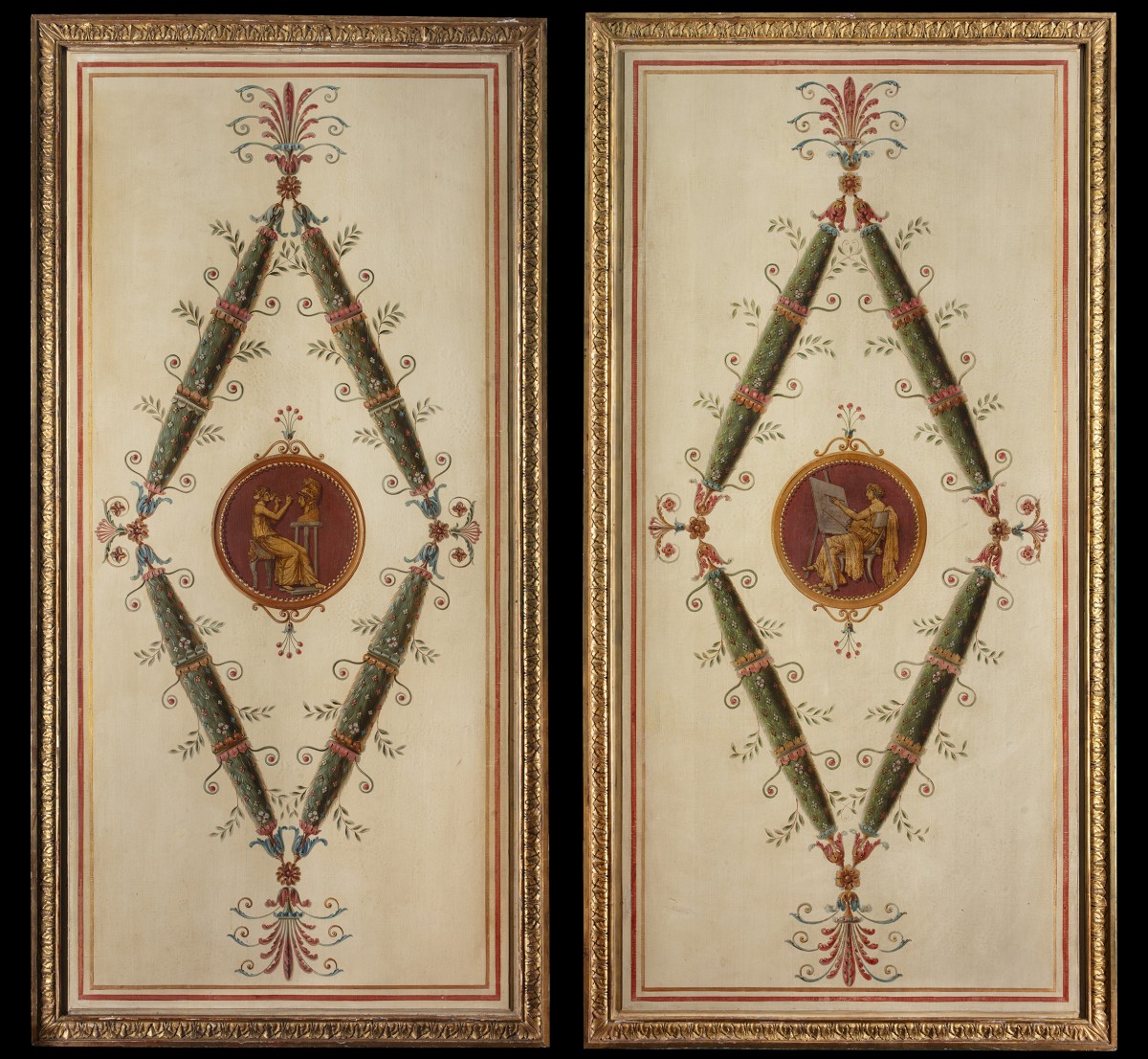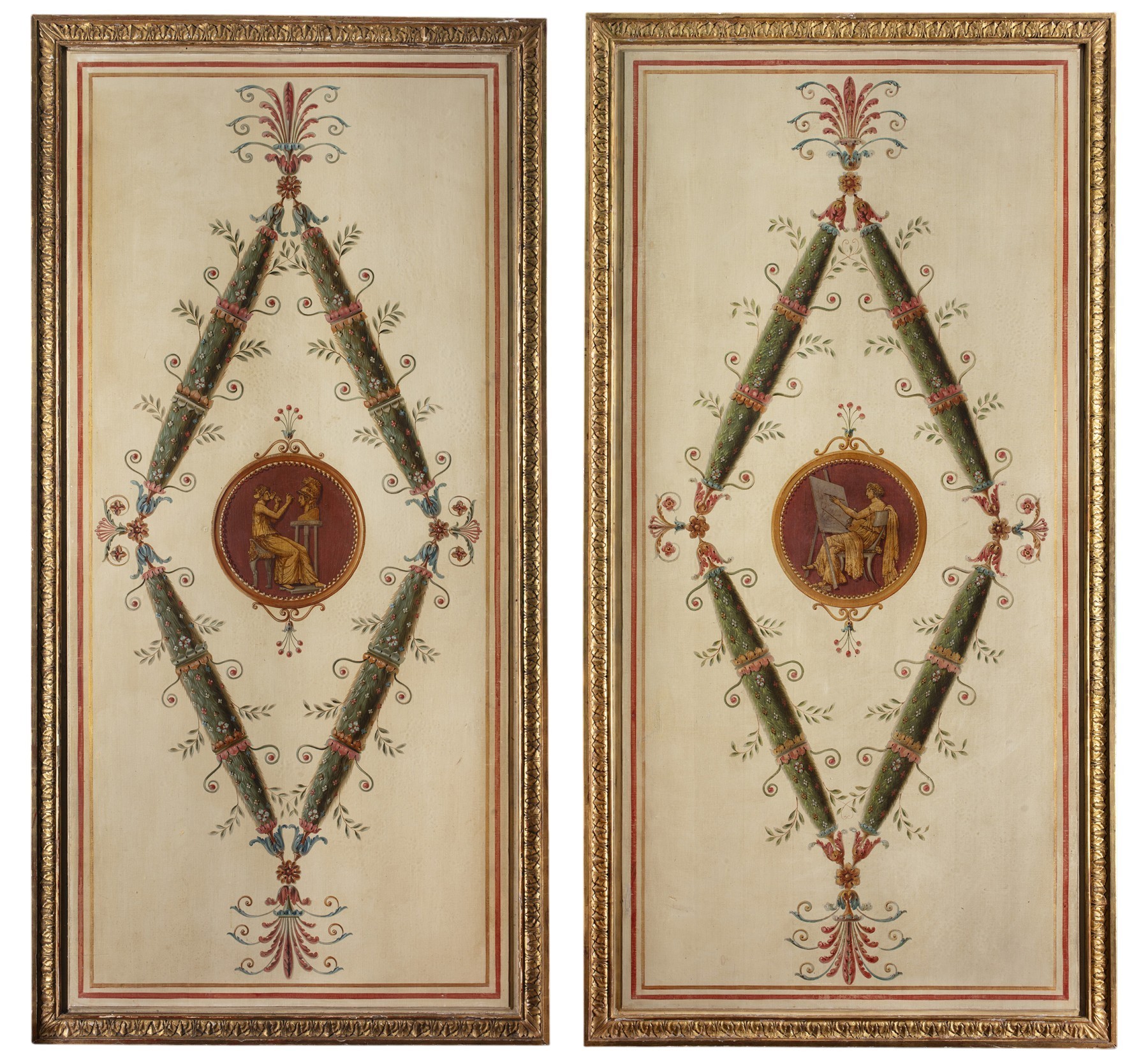 Magnifique paire de peintures à l'huile sur toile marouflée sur bois. Italie. XVIIIe siècle. H x L : 102 x 202 cm.