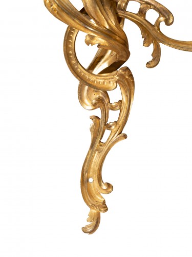 Retrouver le mobilier ou les objets d''art similaires à « Paire d'appliques d'époque Louis XV en bronze doré » présenté par Isabelle Chalvignac, antiquaire à Paris dans la catégorie Appliques Louis XV, Luminaires.