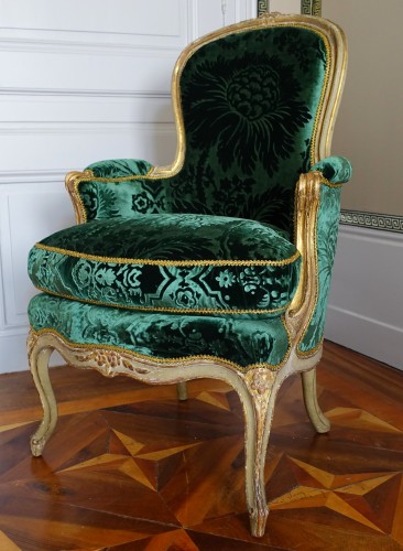 Retrouver le mobilier ou les objets d''art similaires à « Paire de bergères en cabriolet Louis XV - estampille de Louis Delanois » présenté par GSLR Antiques, antiquaire à Grenoble dans la catégorie Fauteuil & Bergère Louis XV, Sièges.