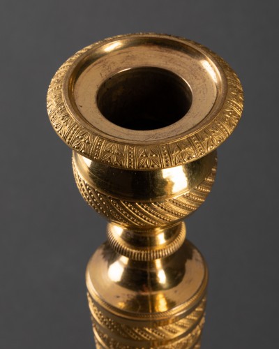Paire de bougeoirs d'époque Empire en bronze finement ciselé et doré.