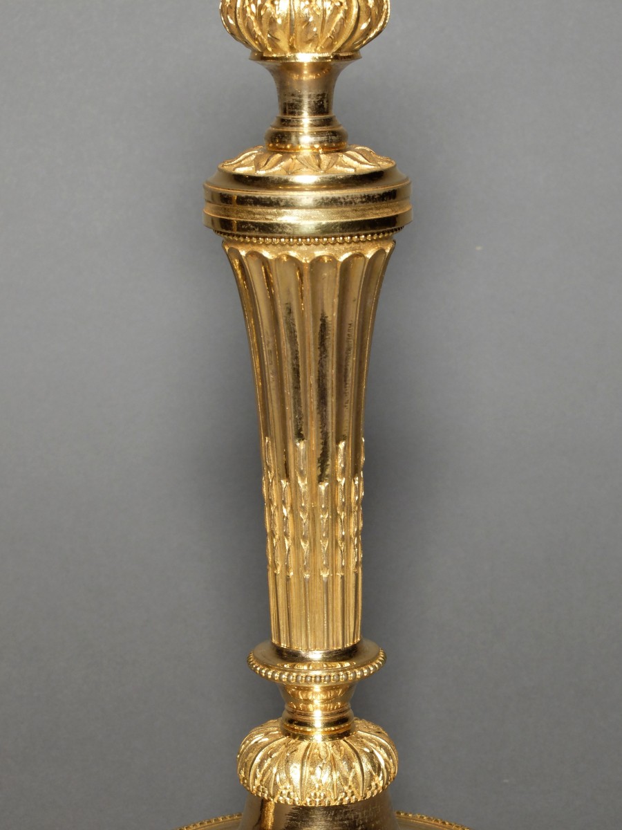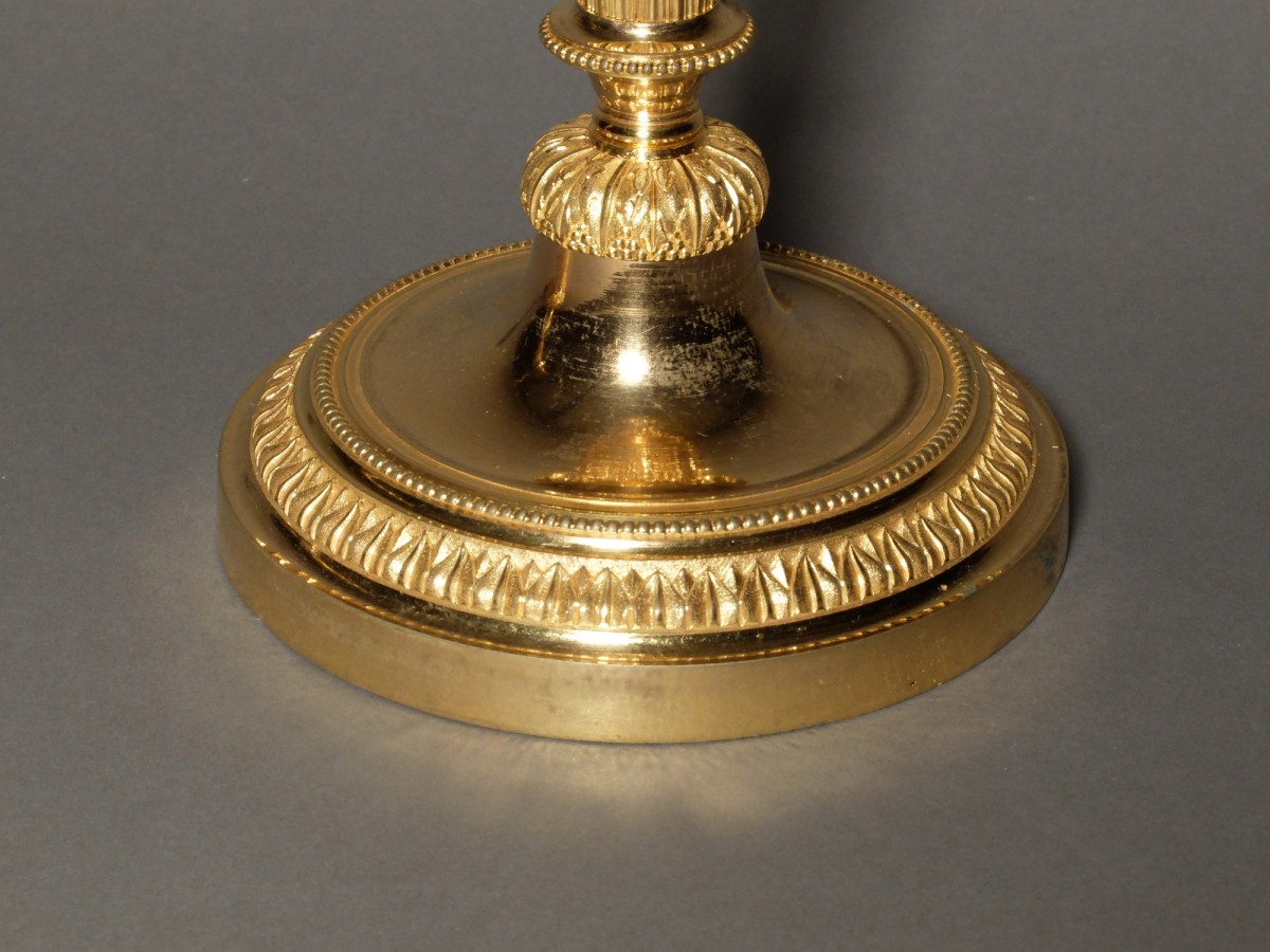 Paire de bougeoirs Louis XVI en bronze finement ciselé et doré au mercure.