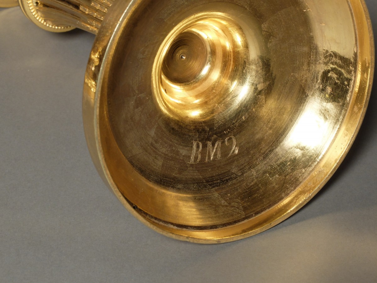 Sous la base de chaque bougeoir, une inscription "BM2" est gravée.