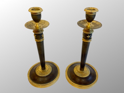 Paire De Bougeoirs époque Consulat. Modèle Aux Etoiles.
