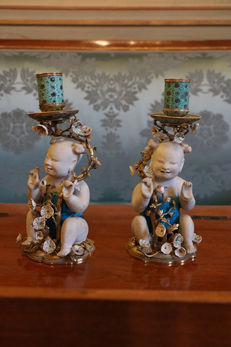 Retrouver le mobilier ou les objets d''art similaires à « Paire de bougeoirs Régence en porcelaine de Chine montée en bronze doré » présenté par Galerie Pellat de Villedon, antiquaire à Versailles dans la catégorie Bougeoirs et Chandeliers Régence, Luminaires.