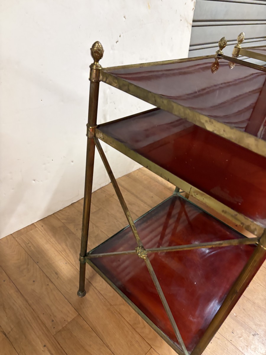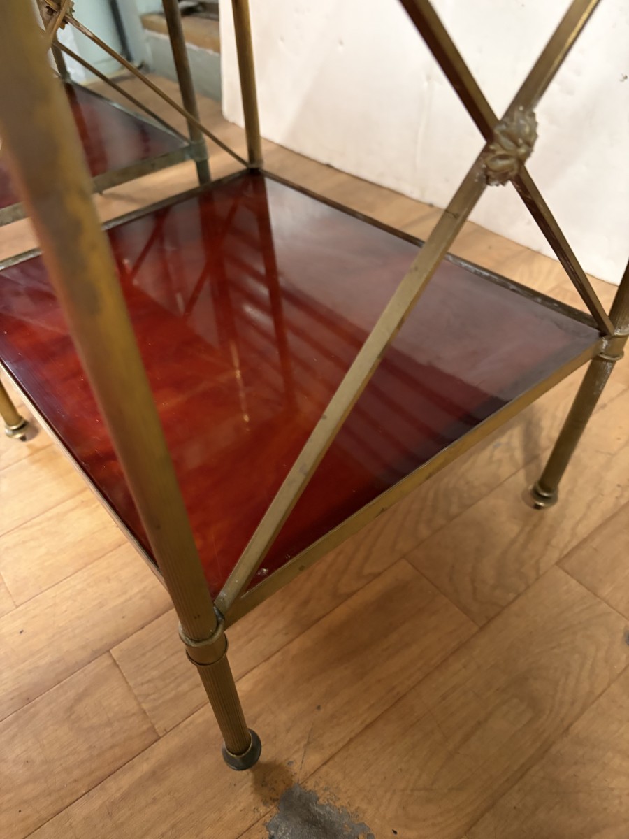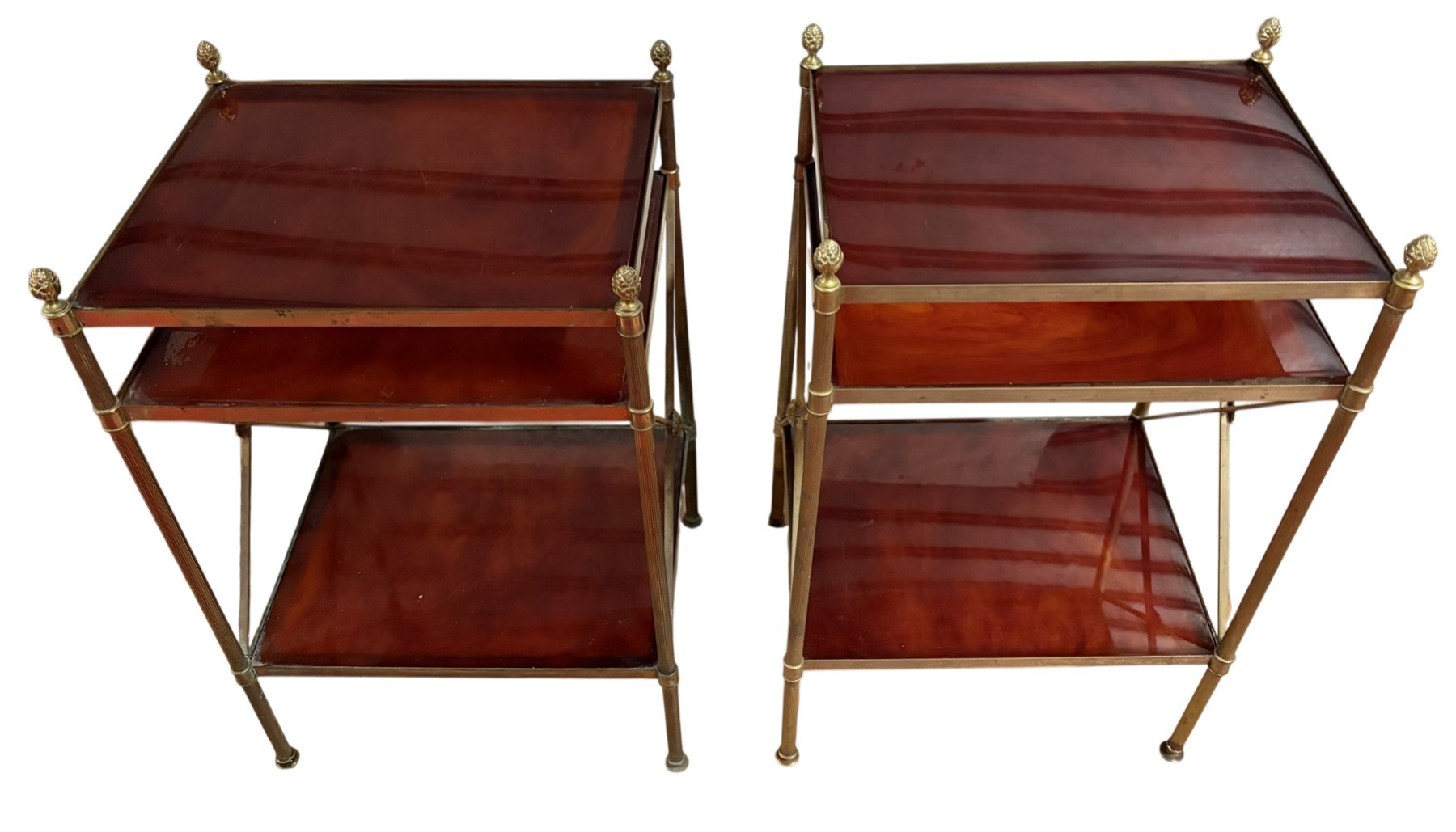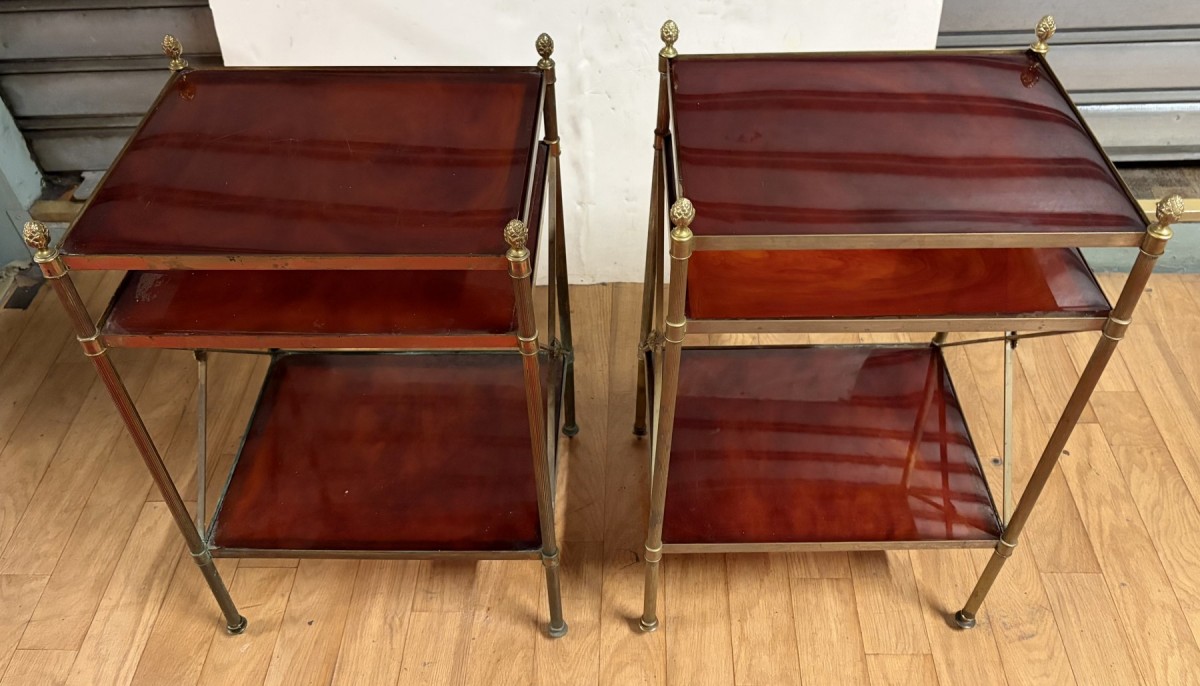 Retrouver le mobilier ou les objets d''art similaires à « Paire de bouts de canapé en laiton et bronze, éagéres en bakélite Maison Baguès » présenté par ABC Pascal, antiquaire à Saint-Ouen dans la catégorie Meuble d'appoint Années 50-60, Mobilier.