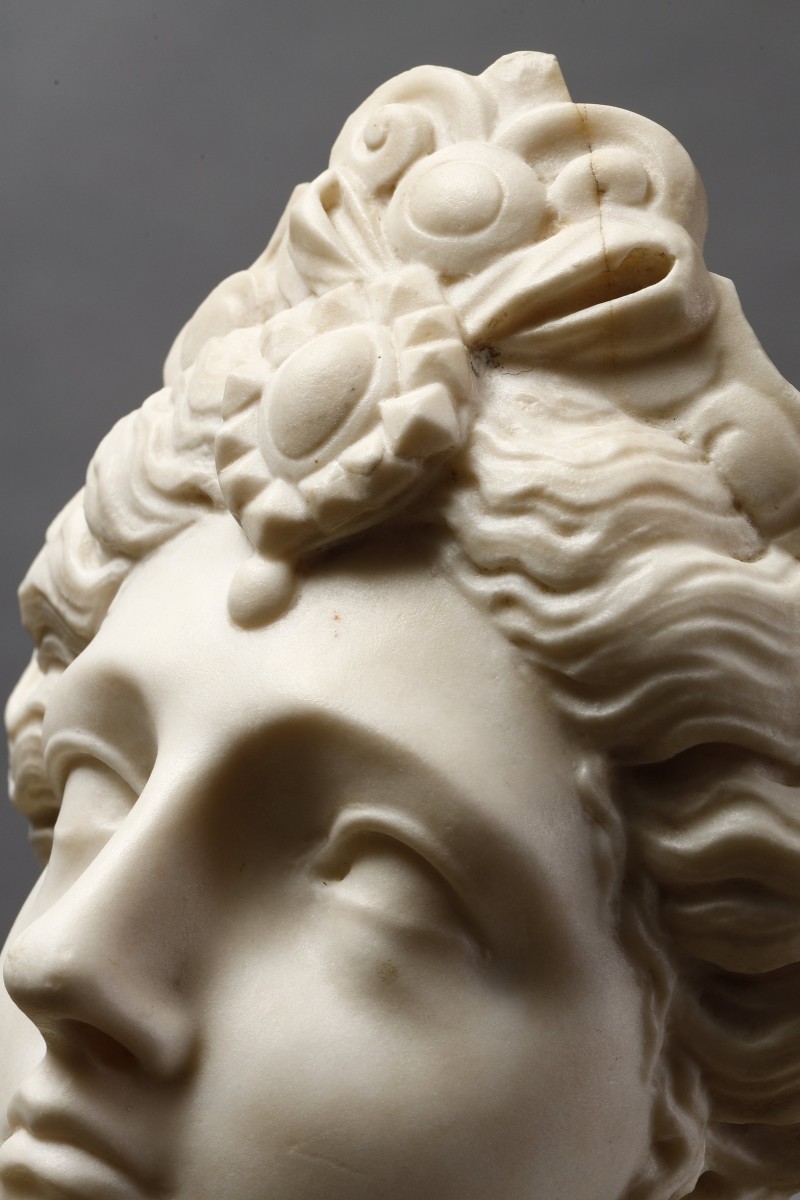Ces deux visages d’éternité, figés dans le marbre avec la sensibilité italienne, sont attribués par l'expert, à Tommaso Rues (1639-1703), sculpteur originaire du Tyrol établi à Venise, élève et collaborateur de Giusto Le Court.