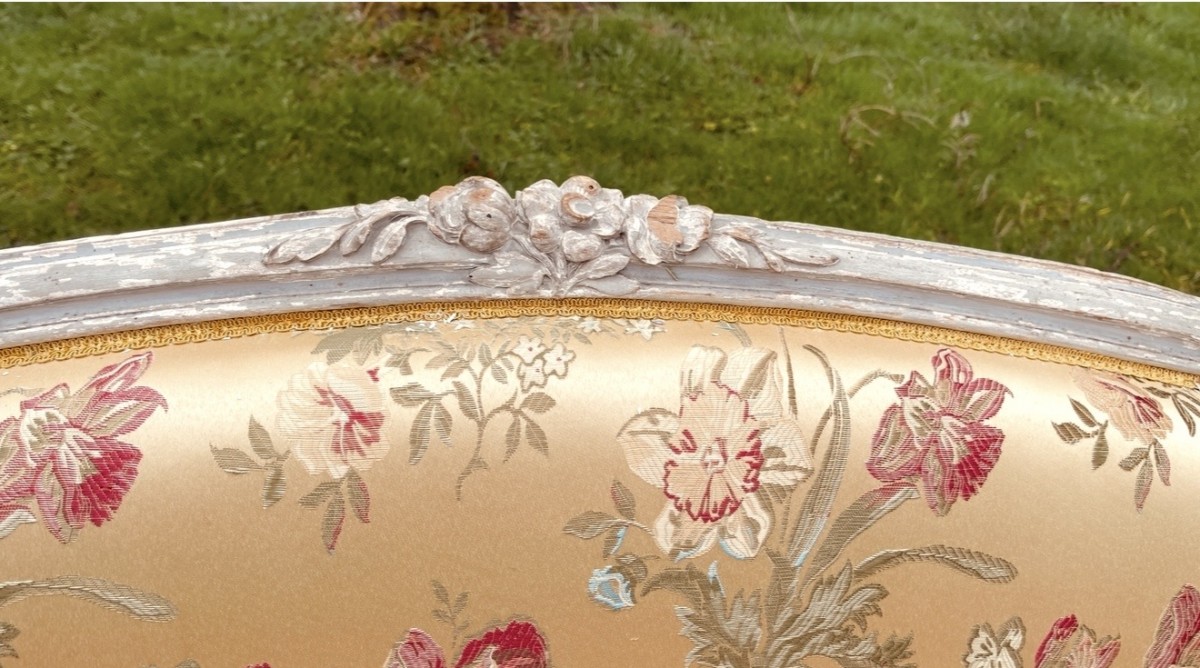 Ils sont en hetre moulure, finement sculpté à décor de fleurettes en bouquets, de feuillages sur les traverses et de feuilles d'acanthe sur les pieds.