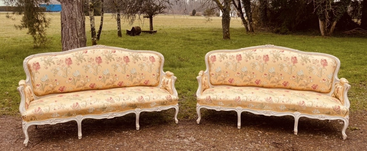 Retrouver le mobilier ou les objets d''art similaires à « Paire de canapés Louis XV » présenté par Galerie Leroy, antiquaire à Remiremont dans la catégorie Canapé & Mobilier de Salon Louis XV, Sièges.