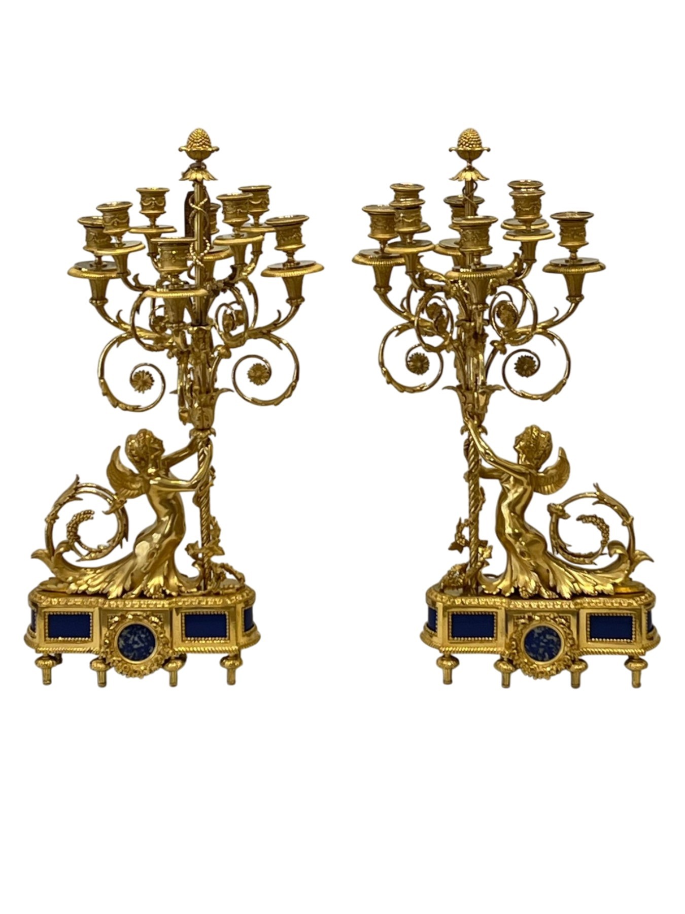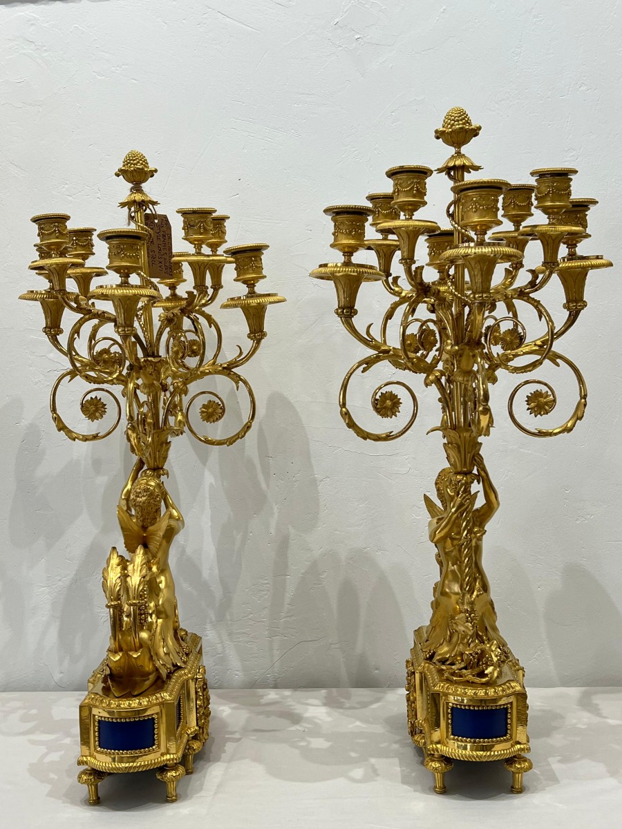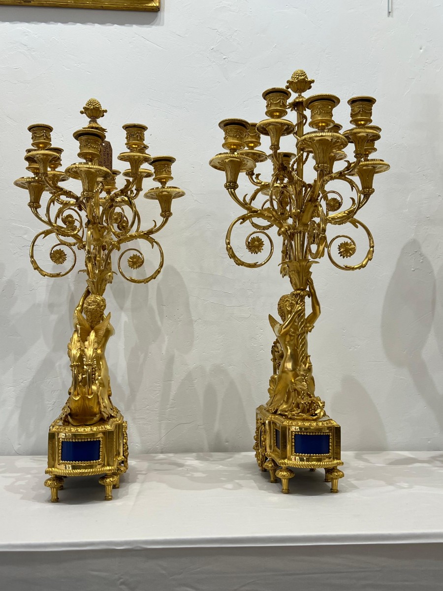 Retrouver le mobilier ou les objets d''art similaires à « Paire de candélabres aux femmes ailées XIXe siècle » présenté par Antikvariat Nice, antiquaire à Nice dans la catégorie Bougeoirs et Chandeliers Napoléon III, Luminaires.