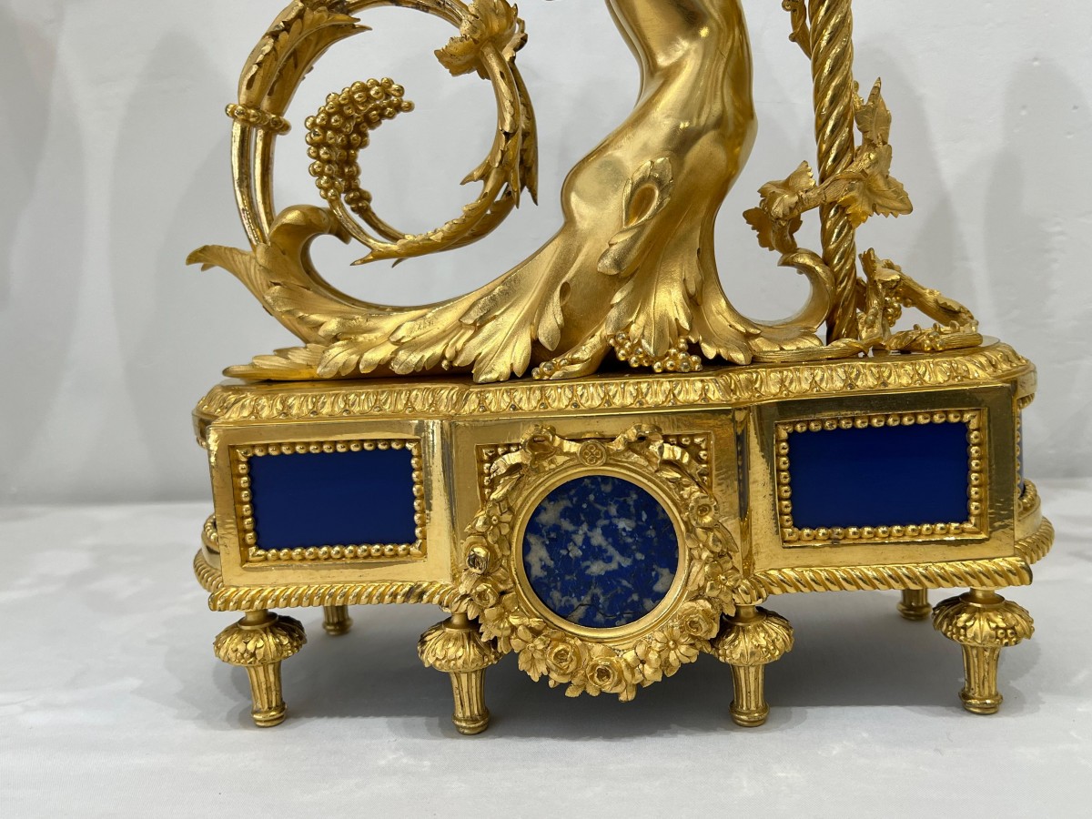 Bronze finement travaillé, bronze doré et plaques de lapis lazuli.