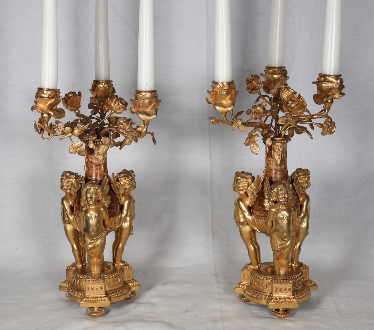 Paire de candélabres en bronze finement ciselé et doré époque Napoléon III