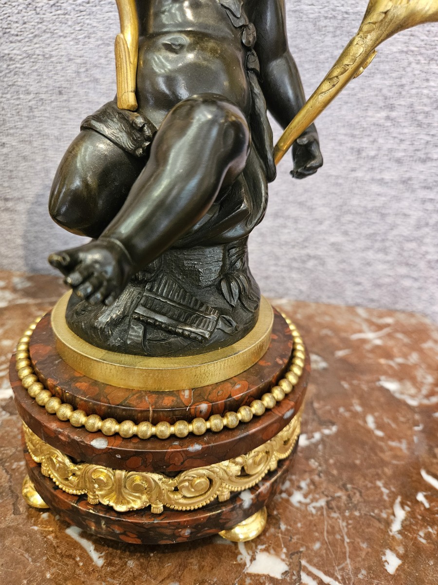 Retrouver le mobilier ou les objets d''art similaires à « Paire de candélabres aux putti en bronze doré et patiné » présenté par Hirsch Antiquités, antiquaire à Paris dans la catégorie Bougeoirs et Chandeliers Napoléon III, Luminaires.