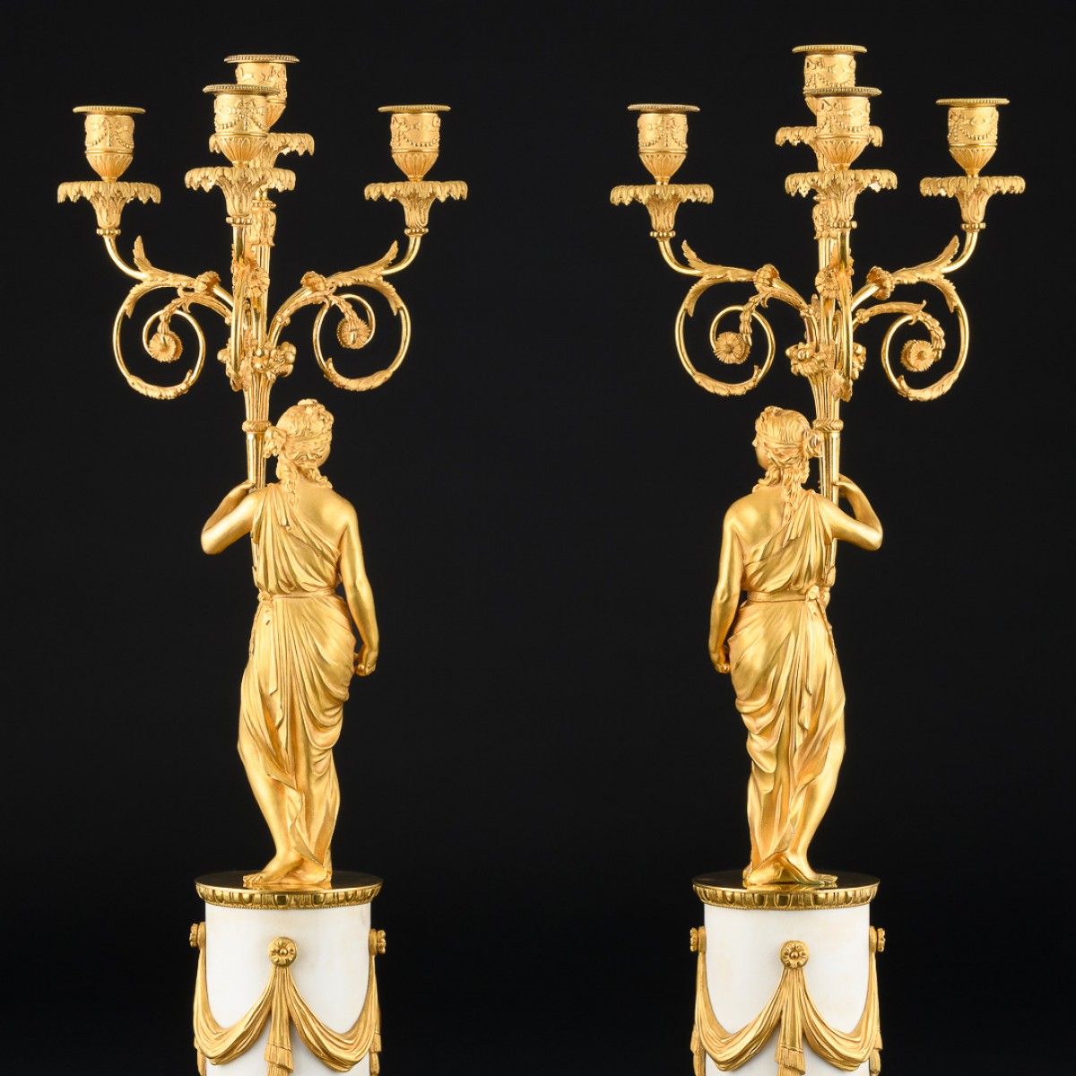 En superbe état, ces candélabres conservent leur dorure au mercure d’origine, ce qui témoigne de leur exceptionnelle conservation.