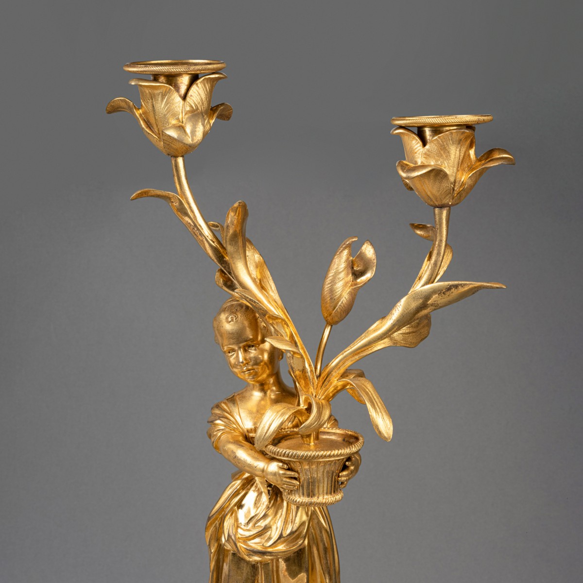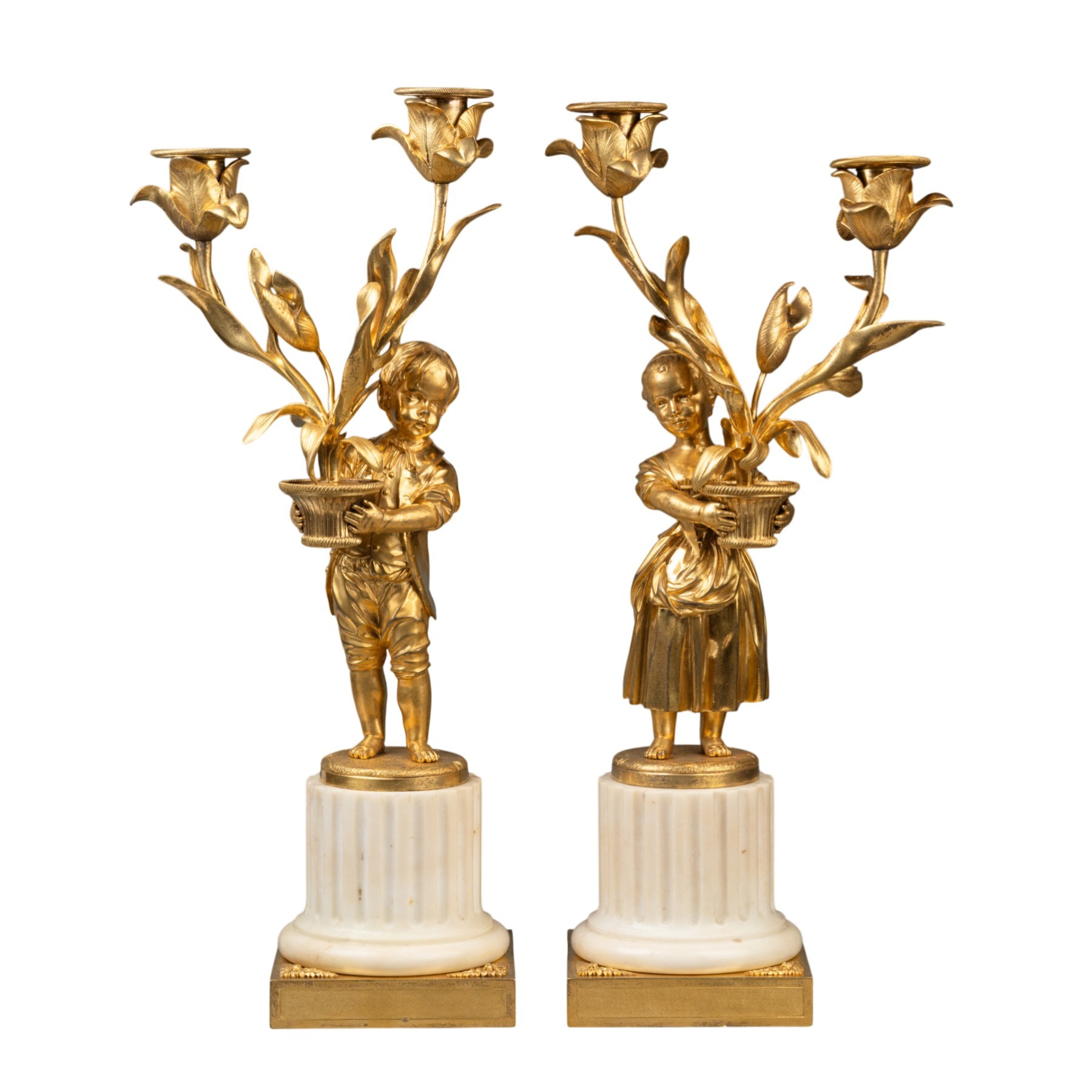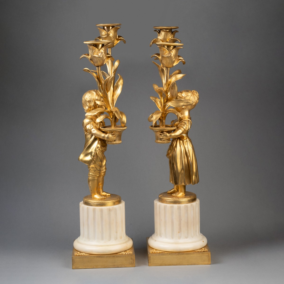 Retrouver le mobilier ou les objets d''art similaires à « Paire de candélabres "enfants jardiniers" époque Louis XVI fin du XVIIIe siècle » présenté par Laurent Chalvignac, antiquaire à Paris dans la catégorie Bougeoirs et Chandeliers Louis XVI, Luminaires.