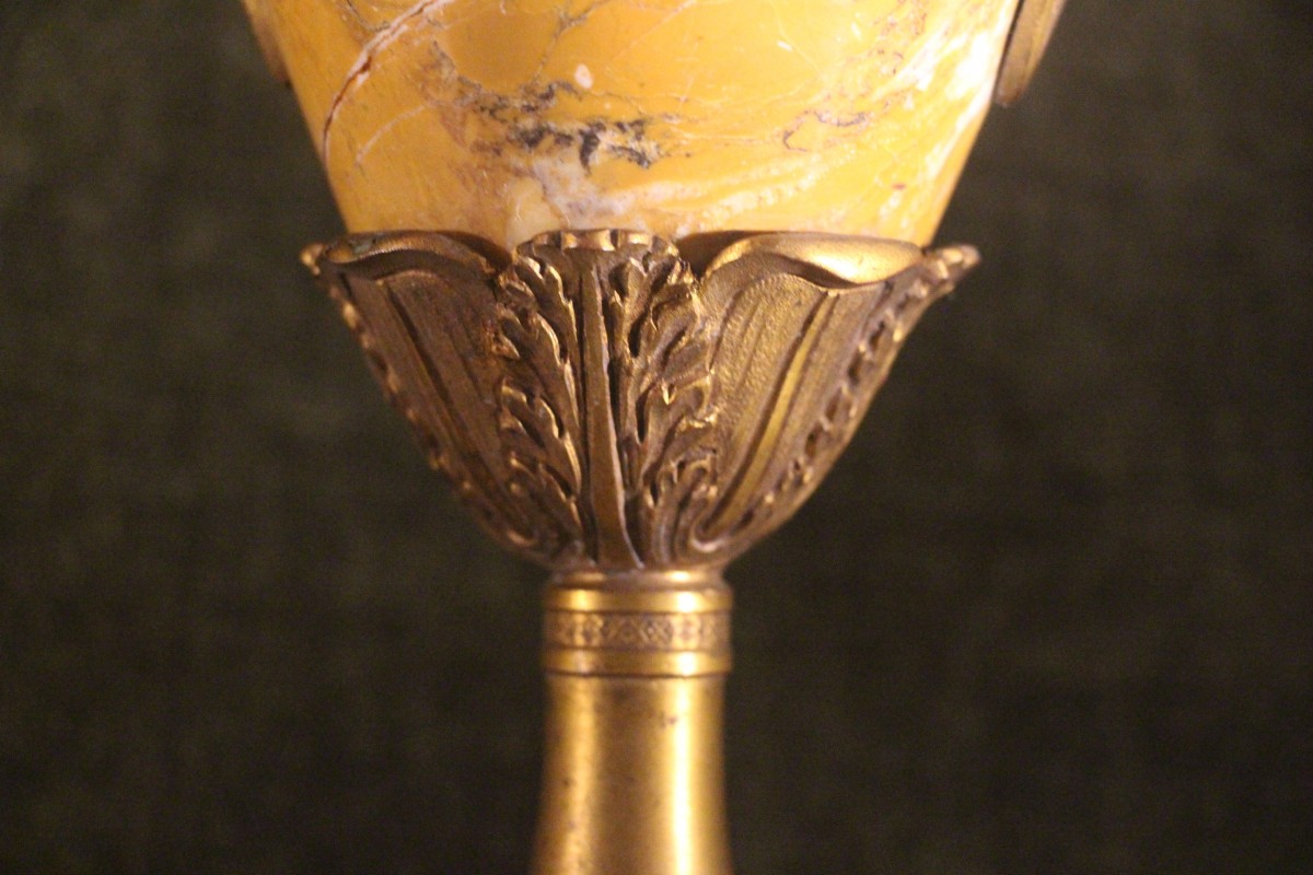 Retrouver le mobilier ou les objets d''art similaires à « Paire de cassolettes en marbre jaune de Sienne, Italie fin XIXe siècle » présenté par Didascalies, antiquaire à Aix-en-Provence dans la catégorie Cassolettes, coupe et vase Napoléon III, Objet de décoration.