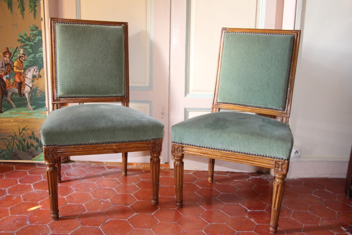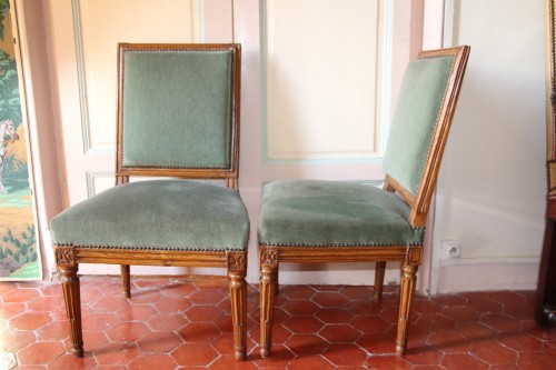 Retrouver le mobilier ou les objets d''art similaires à « Paire de chaises "coin-de-feu", estampillée J. CHARTIER » présenté par Didascalies, antiquaire à Aix-en-Provence dans la catégorie Chaise Louis XVI, Sièges.