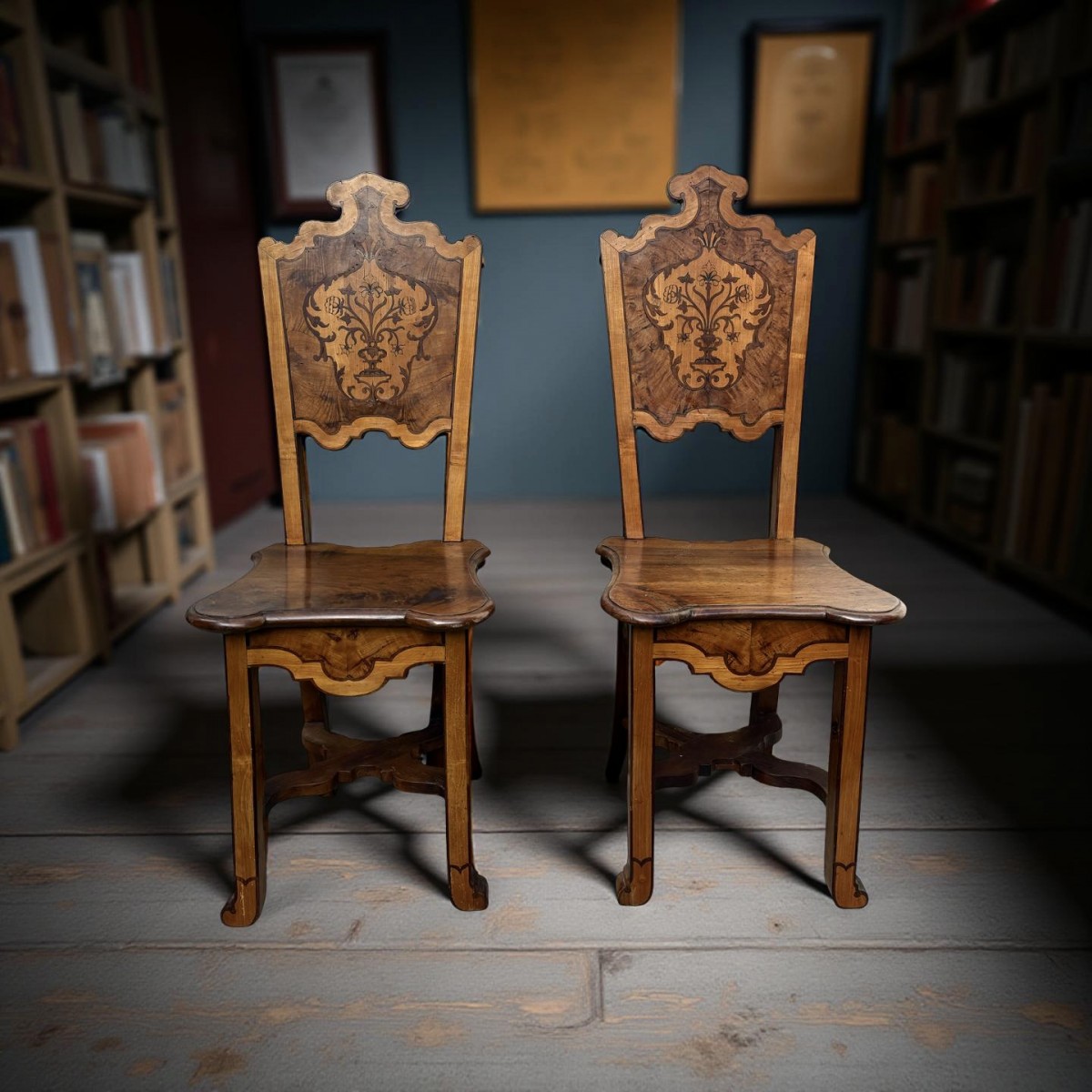 Retrouver le mobilier ou les objets d''art similaires à « Paire de chaises narquetés de Vénétie, début XVIIIe siècle » présenté par Antichità San Felice, antiquaire à Pistoia dans la catégorie Chaise Louis XIV, Sièges.