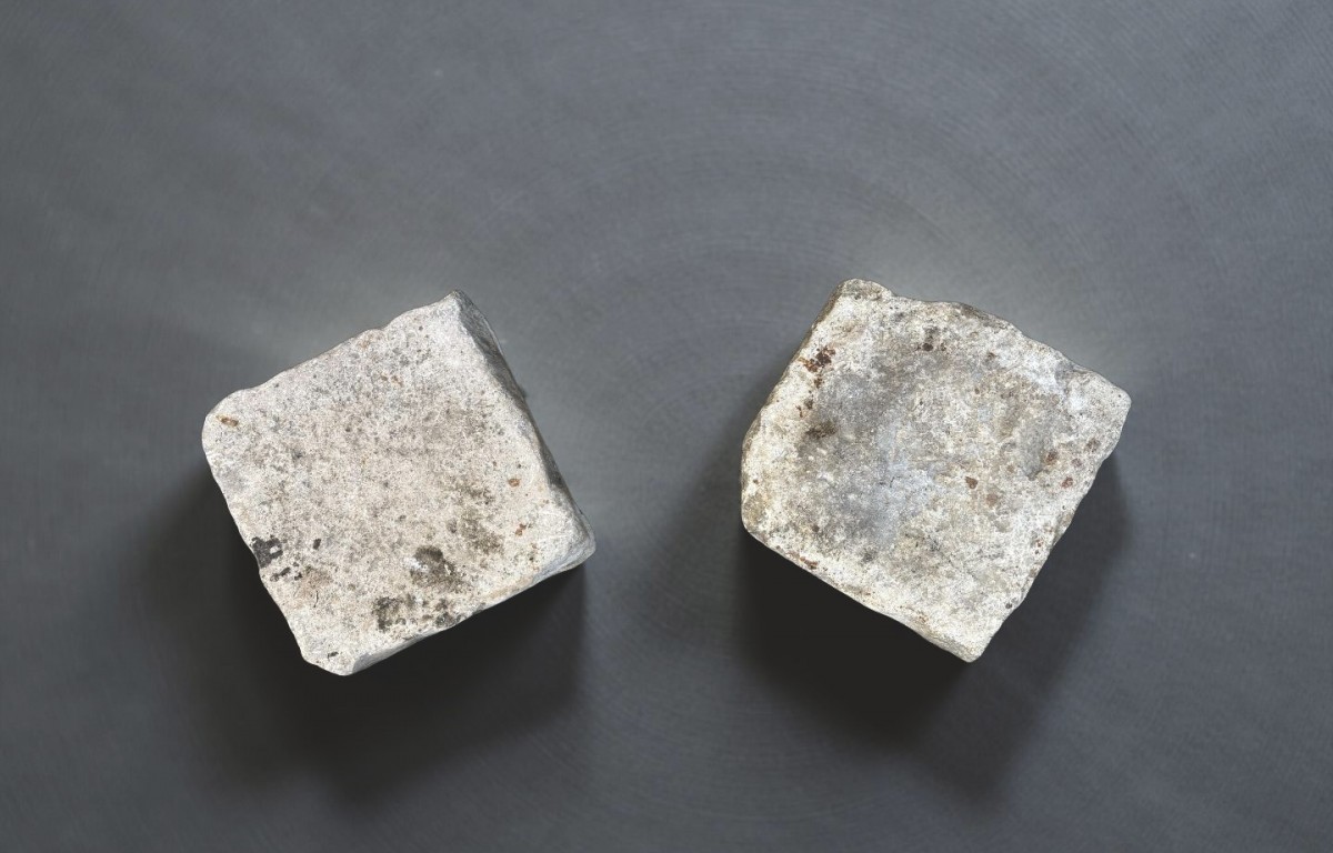 Paire de chapiteaux médiévaux ornés de motifs de feuilles, Lombardie, XIIe siècle.