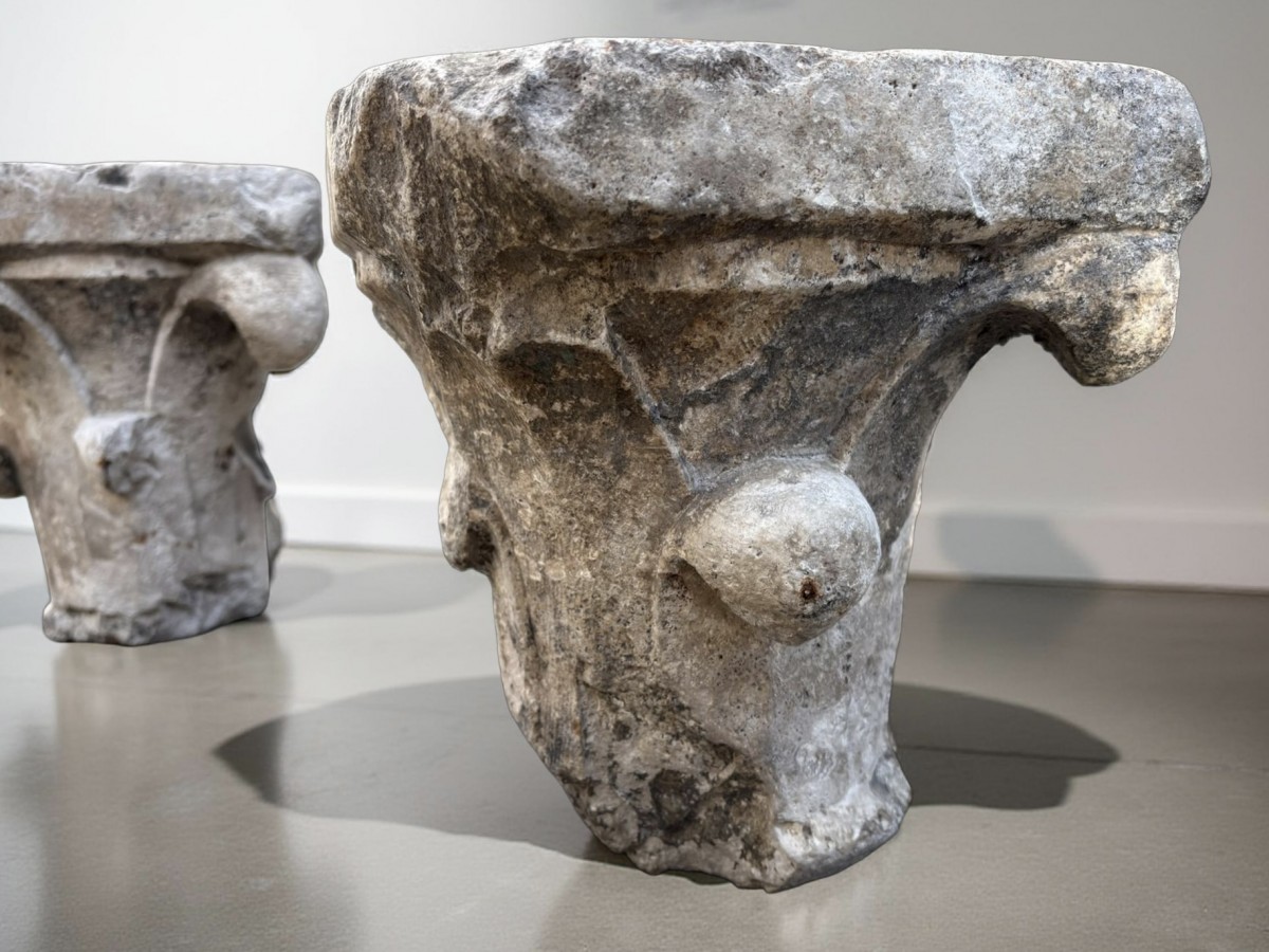Retrouver le mobilier ou les objets d''art similaires à « Paire de chapiteaux médiévaux en marbre, Lombardie XIIe siècle » présenté par Antichità San Felice, antiquaire à Pistoia dans la catégorie Sculpture en Marbre Moyen Âge, Sculpture.