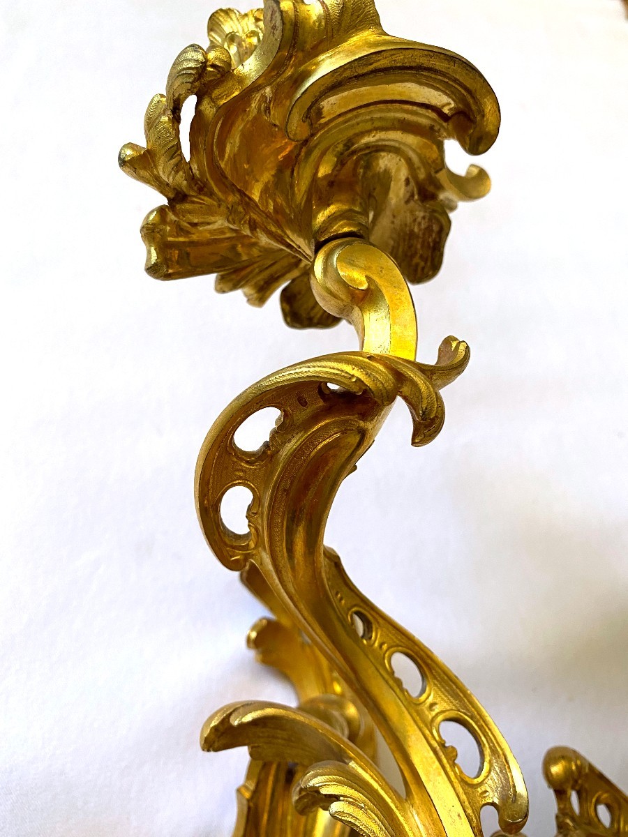 Retrouver le mobilier ou les objets d''art similaires à « Paire d'applique Louis XV en bronze doré attribué à Caffieri » présenté par Jullion Antiquités, antiquaire à Port d'envaux dans la catégorie Appliques Louis XV, Luminaires.