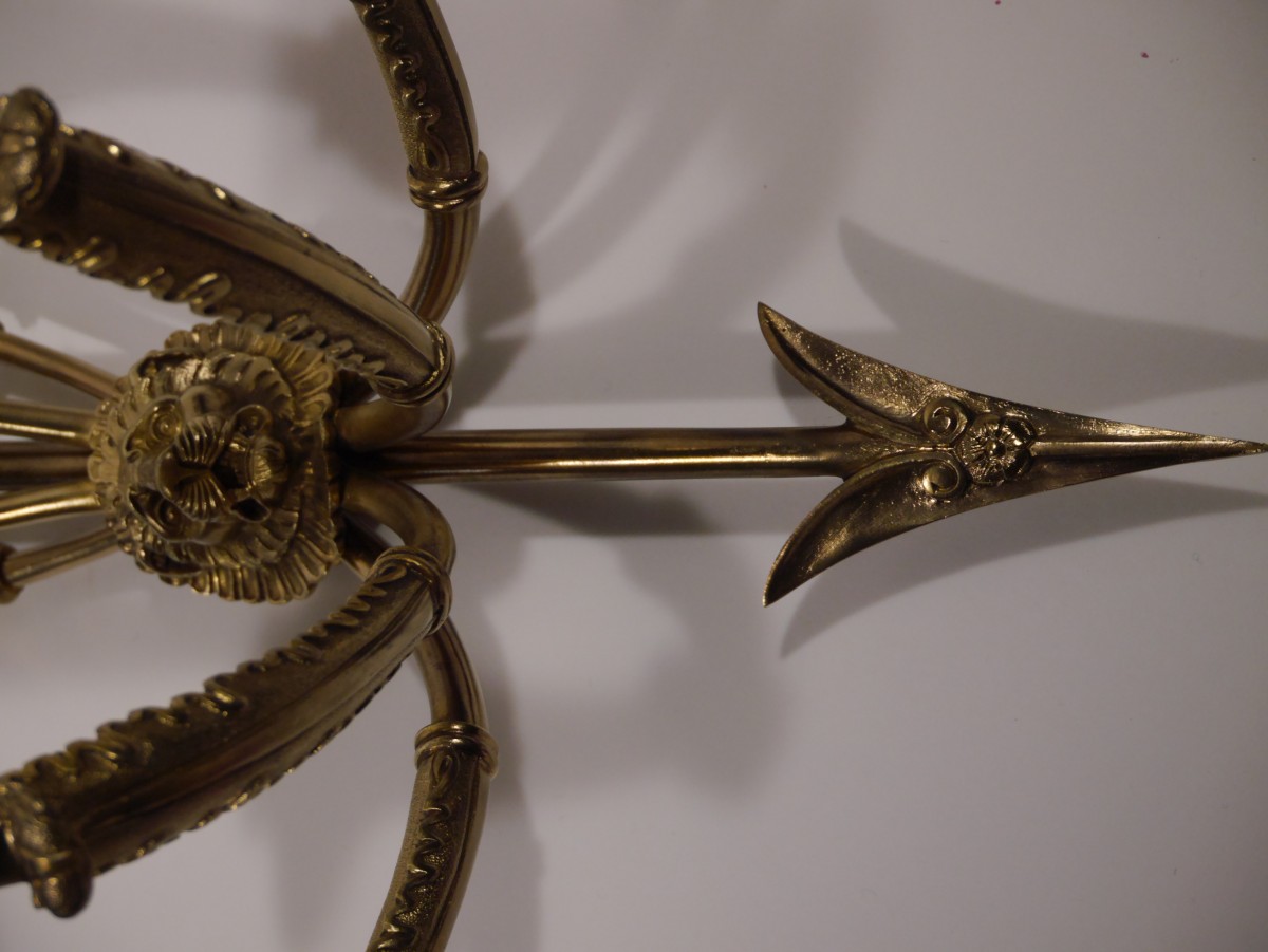 Retrouver le mobilier ou les objets d''art similaires à « Paire d'appliques "à flèches" d'après Claude Galle » présenté par Igra Lignum, antiquaire à Marnand dans la catégorie Appliques Empire, Luminaires.