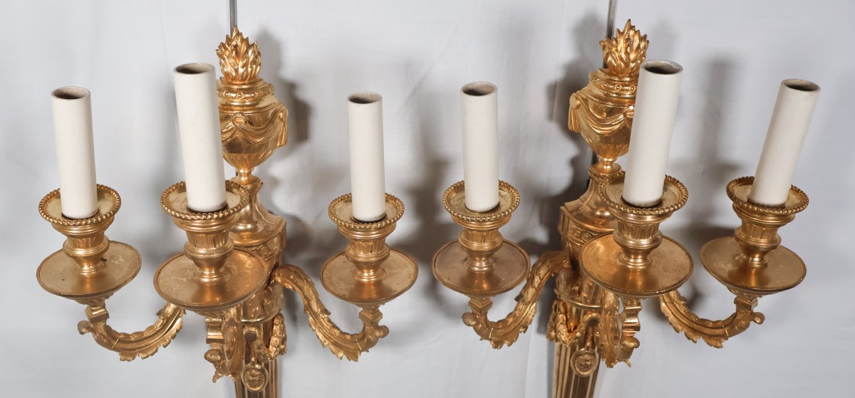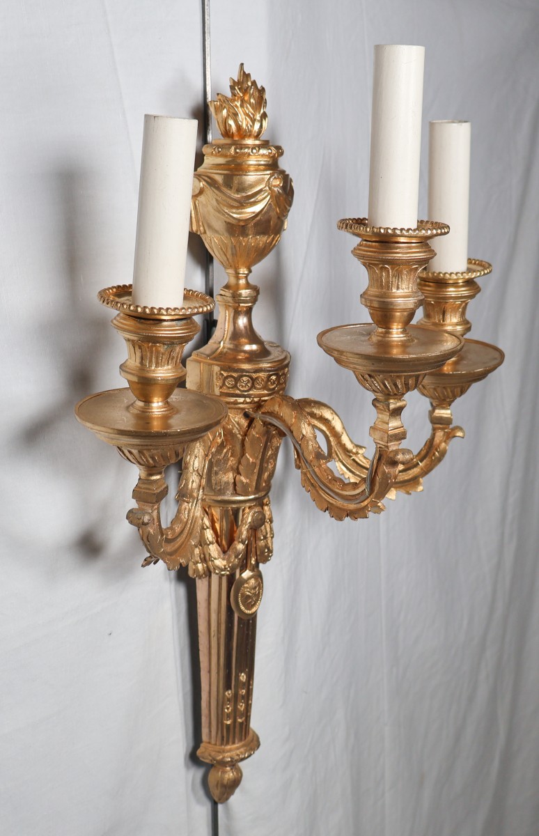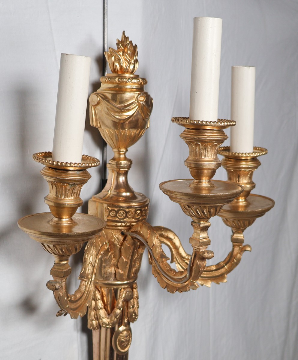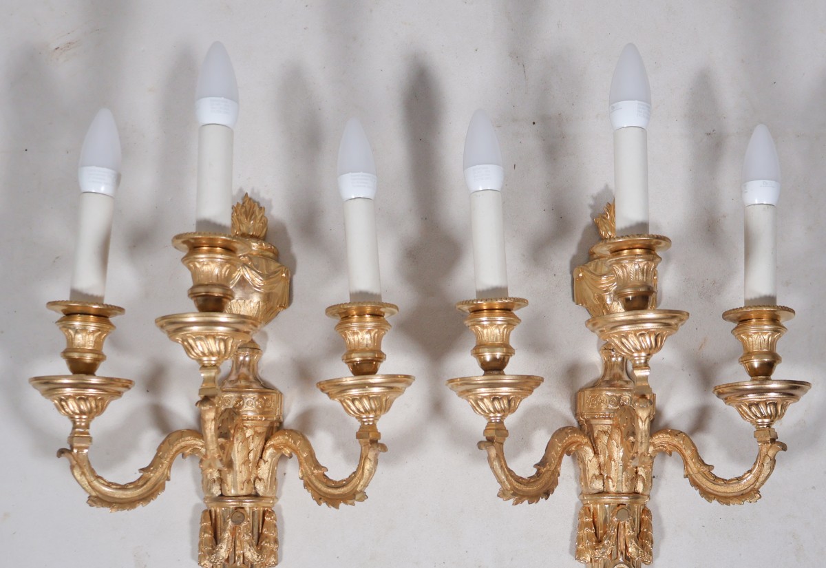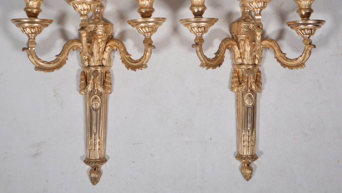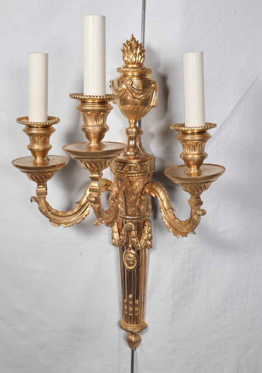 Retrouver le mobilier ou les objets d''art similaires à « Paire d'appliques en bronze doré époque Louis XVI » présenté par Galerie Lauretta, antiquaire à Mandelieu-la-Napoule dans la catégorie Appliques Louis XVI, Luminaires.