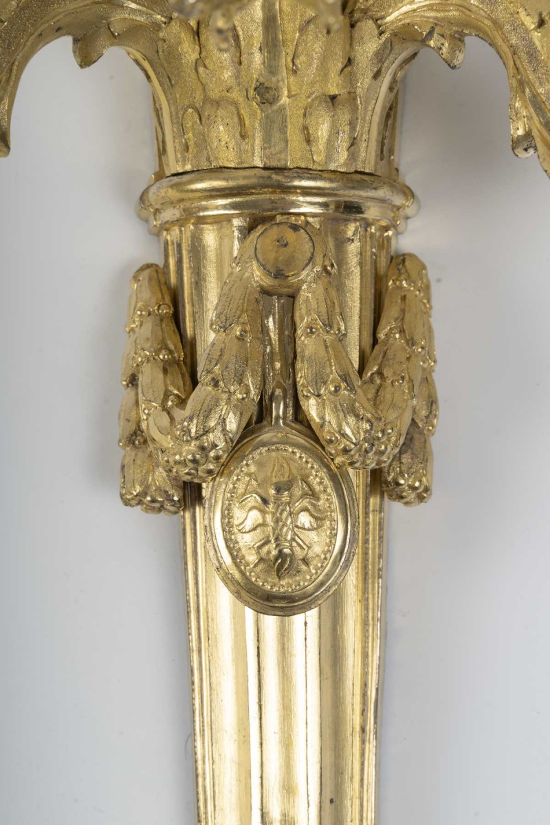 Paire d'appliques d'époque Louis XVI, XVIIIéme siècle, à trois bras de lumière à décor de carquois en bronze doré au mercure.